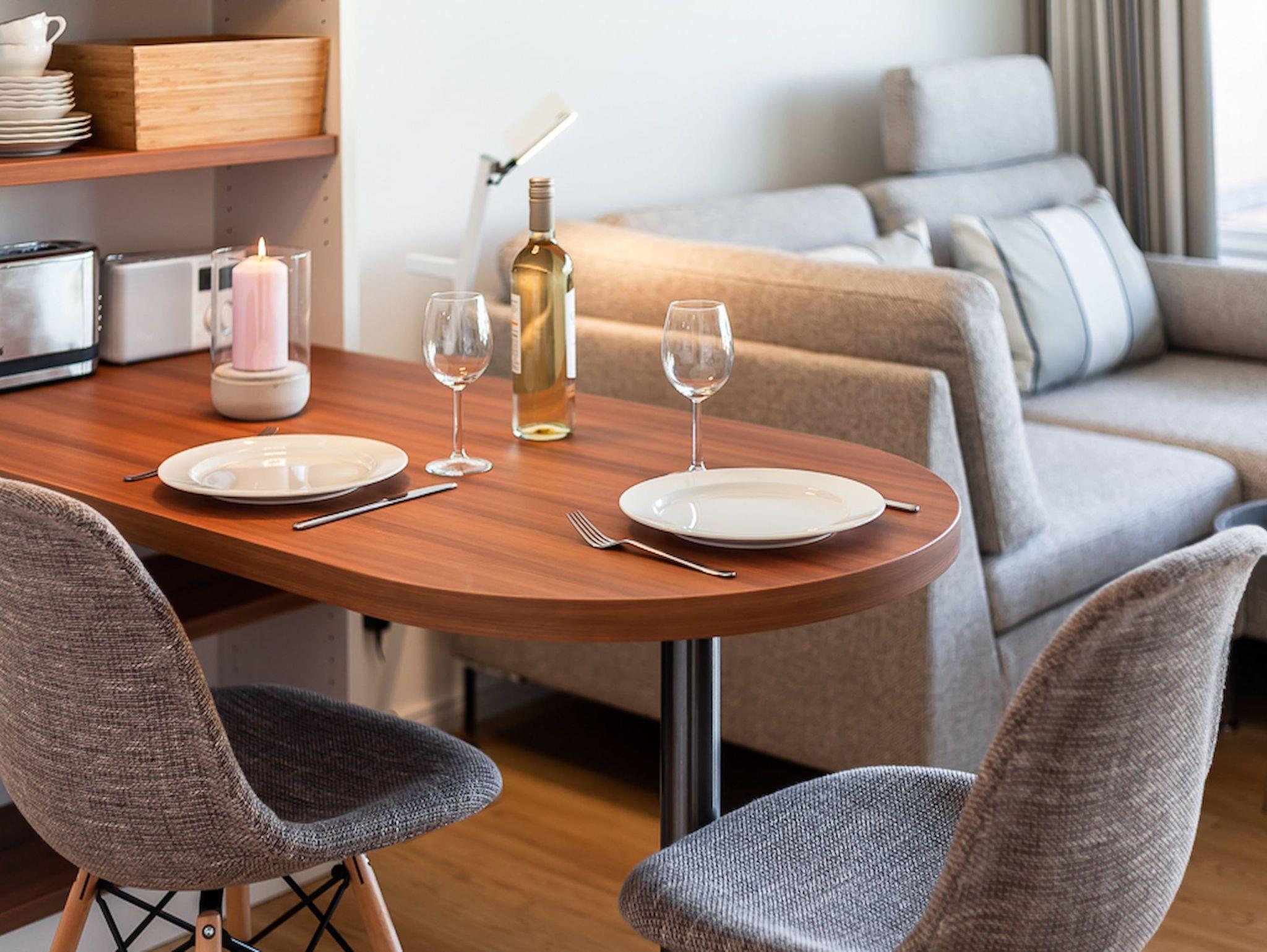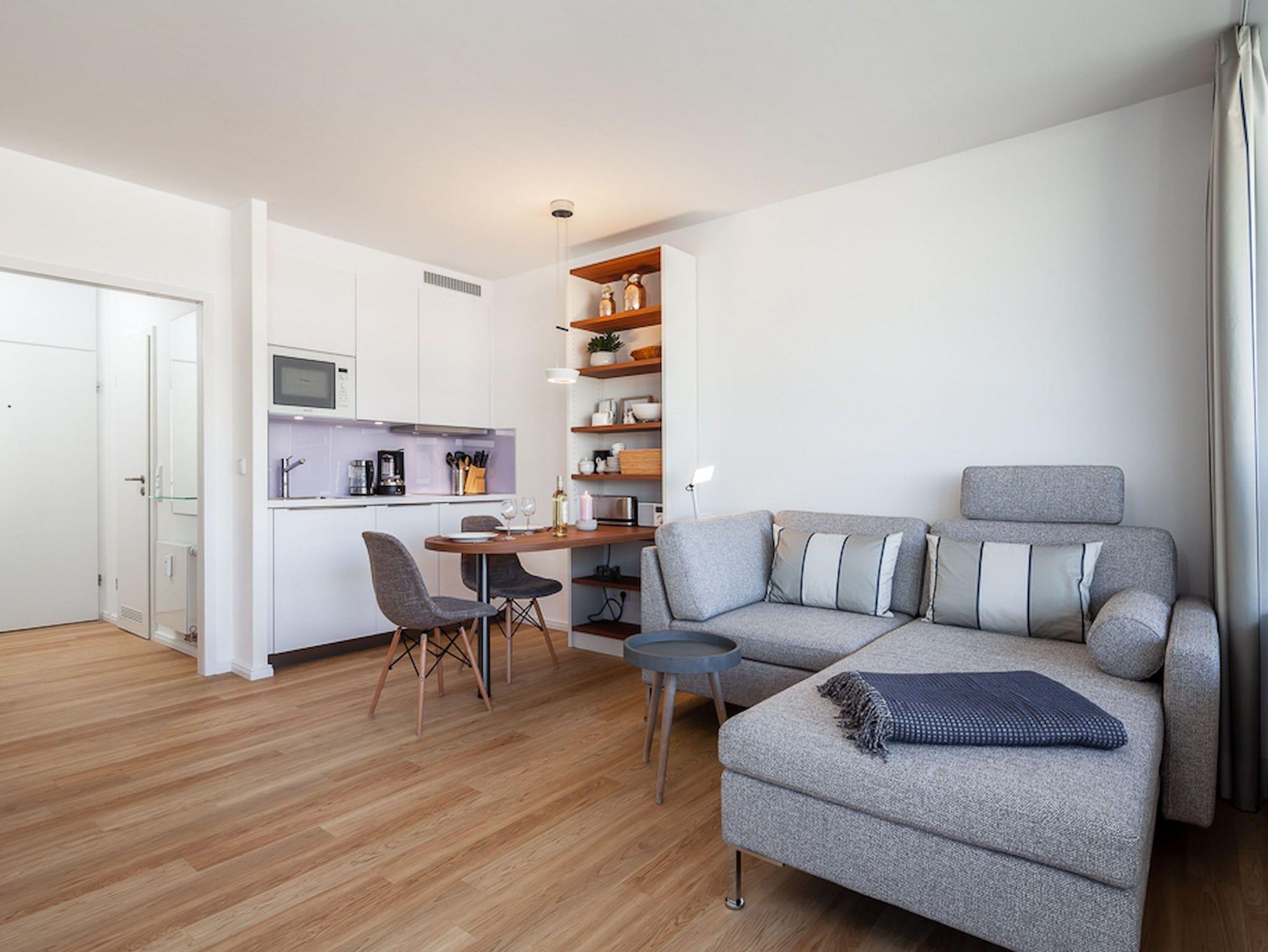 Moderne 1,5-Zimmer-Ferienwohnung mit Balkon und WLAN nahe der Strandpromenade in Lübeck-Travemünde.