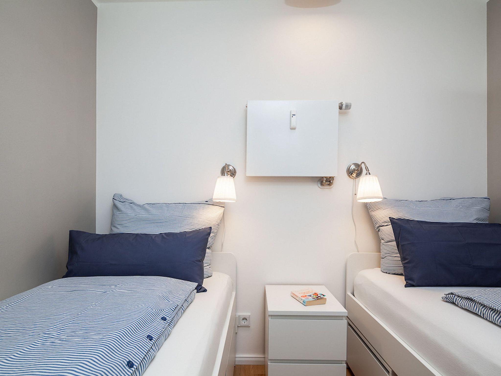 Die erfrischend und hochwertig ausgestattete 1,5 Zimmer Wohnung ?Strandkorb besticht mit schönen warmen Farben und modernem Design. In 2. Reihe vom Meer gelegen, lädt dieses Appartement in ruhiger und gepflegter Wohnanlage zu einem schönen erholsamen Urlaub ein. Die feine, kleine Wohnung ?Strandkorb hat einen großen Wohn-Essraum mit integrierter Küchenzeile. Eine gemütliche Sofaecke mit Liegemöglichkeit (177cm x 166cm) für eine Person lädt zum Lesen oder einem Abend am TV ein. W-Lan ist natürlich auch vorhanden. Die Steh-Leselampe können Sie mit einem Griff von der Ladestation überall mit hinnehmen. Der kleine Schlafraum verfügt über zwei Einzelbetten (90cm x 200 cm) und hat ein Oberlicht, das geöffnet bzw. auch verdunkelt werden kann. Das hochwertige Badezimmer ist getrennt vom WC. Der überdachte Balkon mit Sonne von morgens bis in den Nachmittag (je nach Jahreszeit) hat zwei bequeme Sessel, einen Esstisch, sowie Außenlicht.