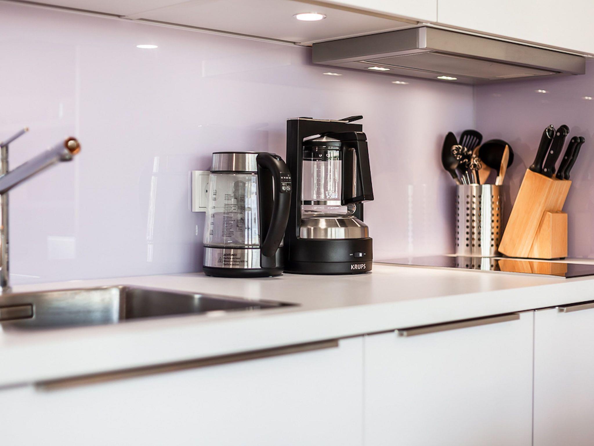Balkon, Küche, Geschirrspüler, Mikrowelle, Duschbad, Fön, (Waschmaschine und Trockner im Haus), TV, Radio, kostenl. W-Lan, Aufzug, inkl. Tiefgaragenstellplatz (Einfahrtshöhe: 1,90 m).