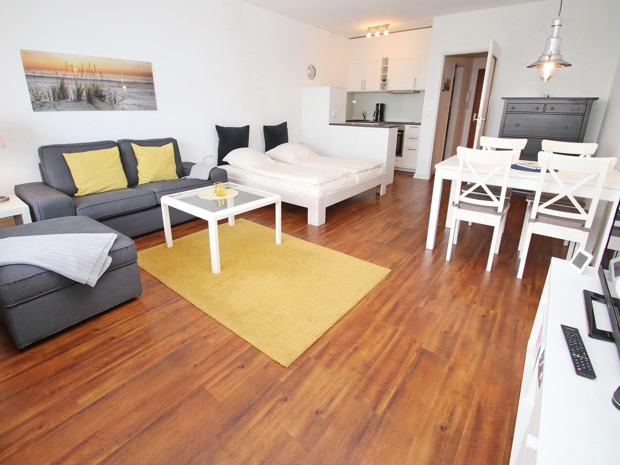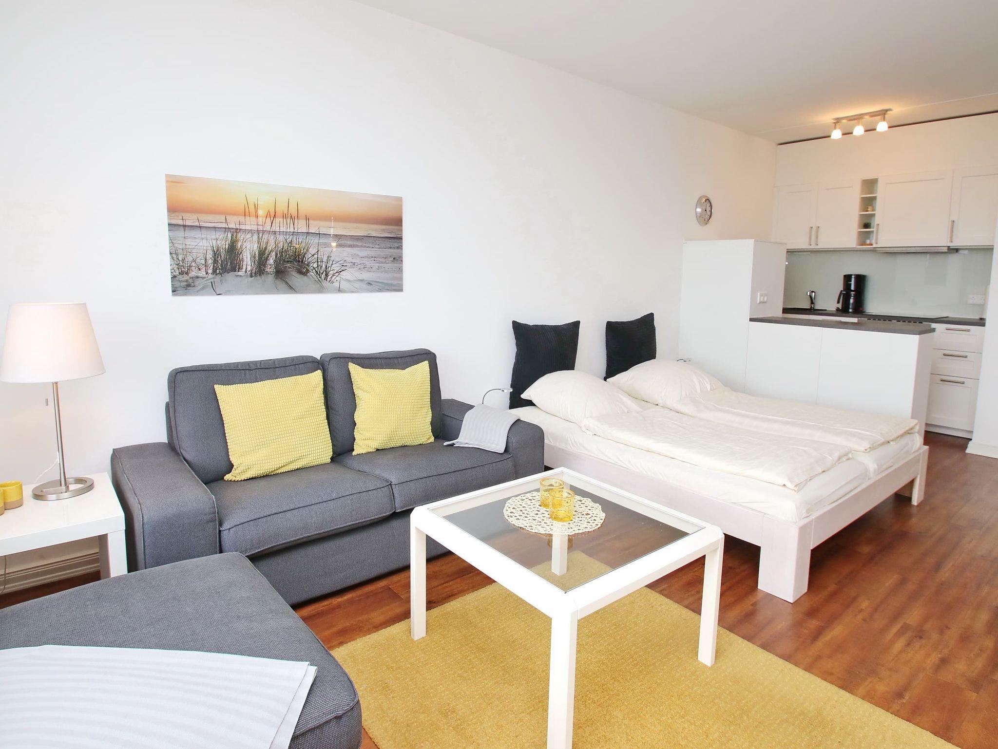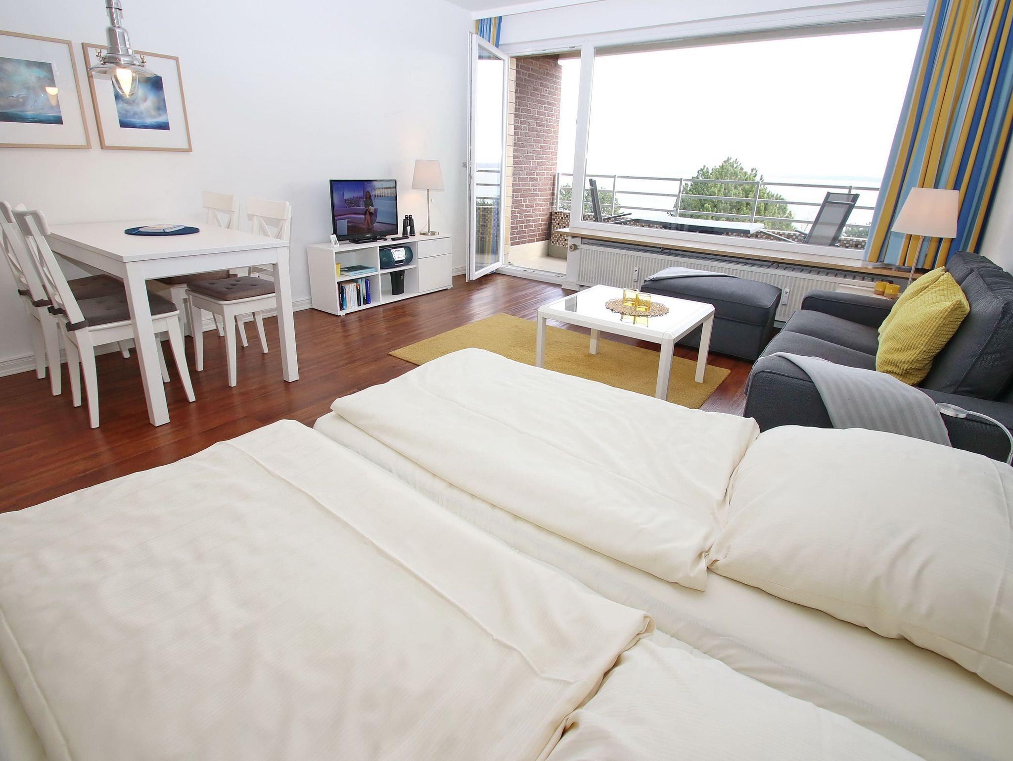 1-Zimmer-Ferienwohnung, 3. OG, ca. 48 m² mit Meerblick.