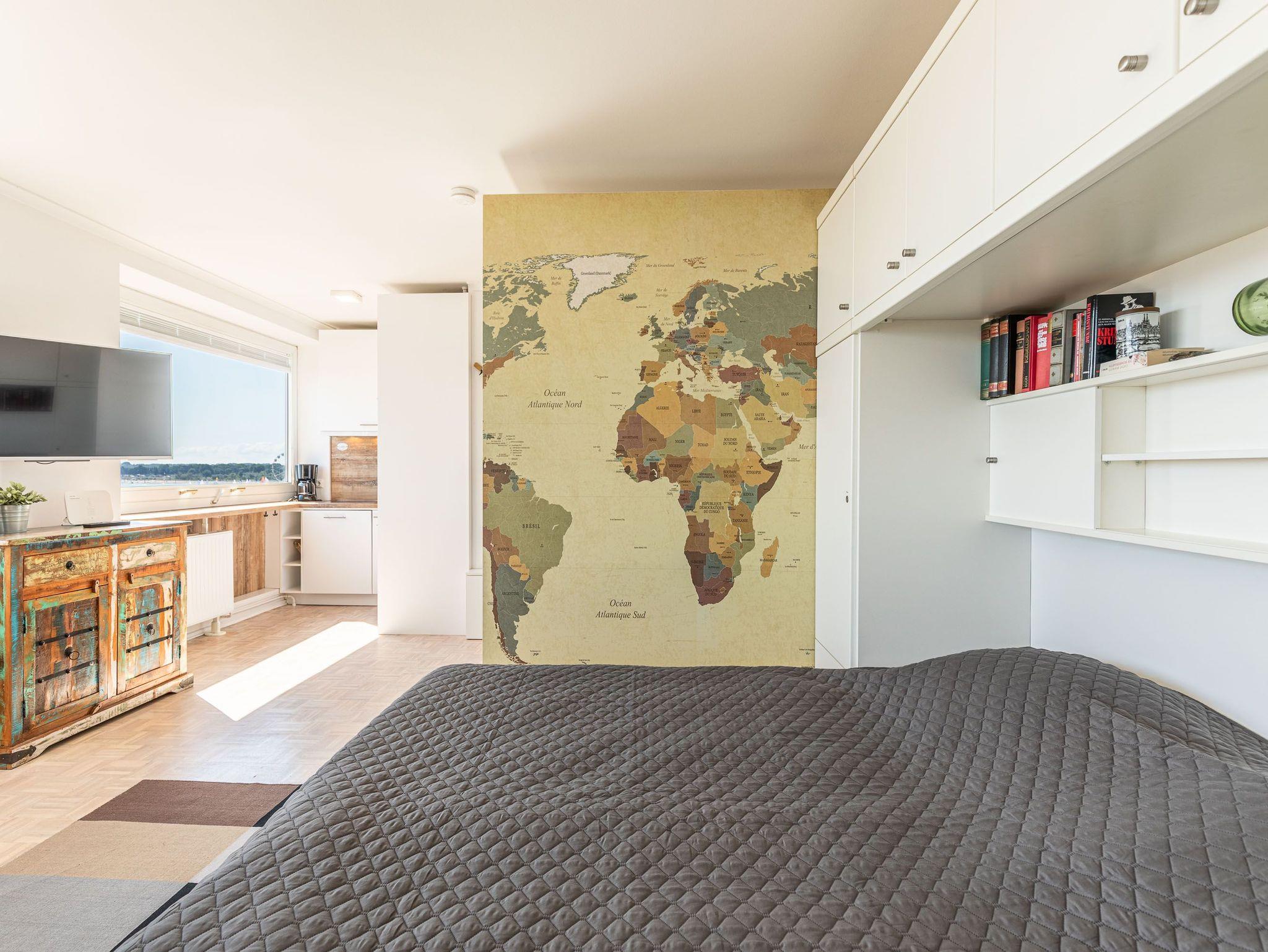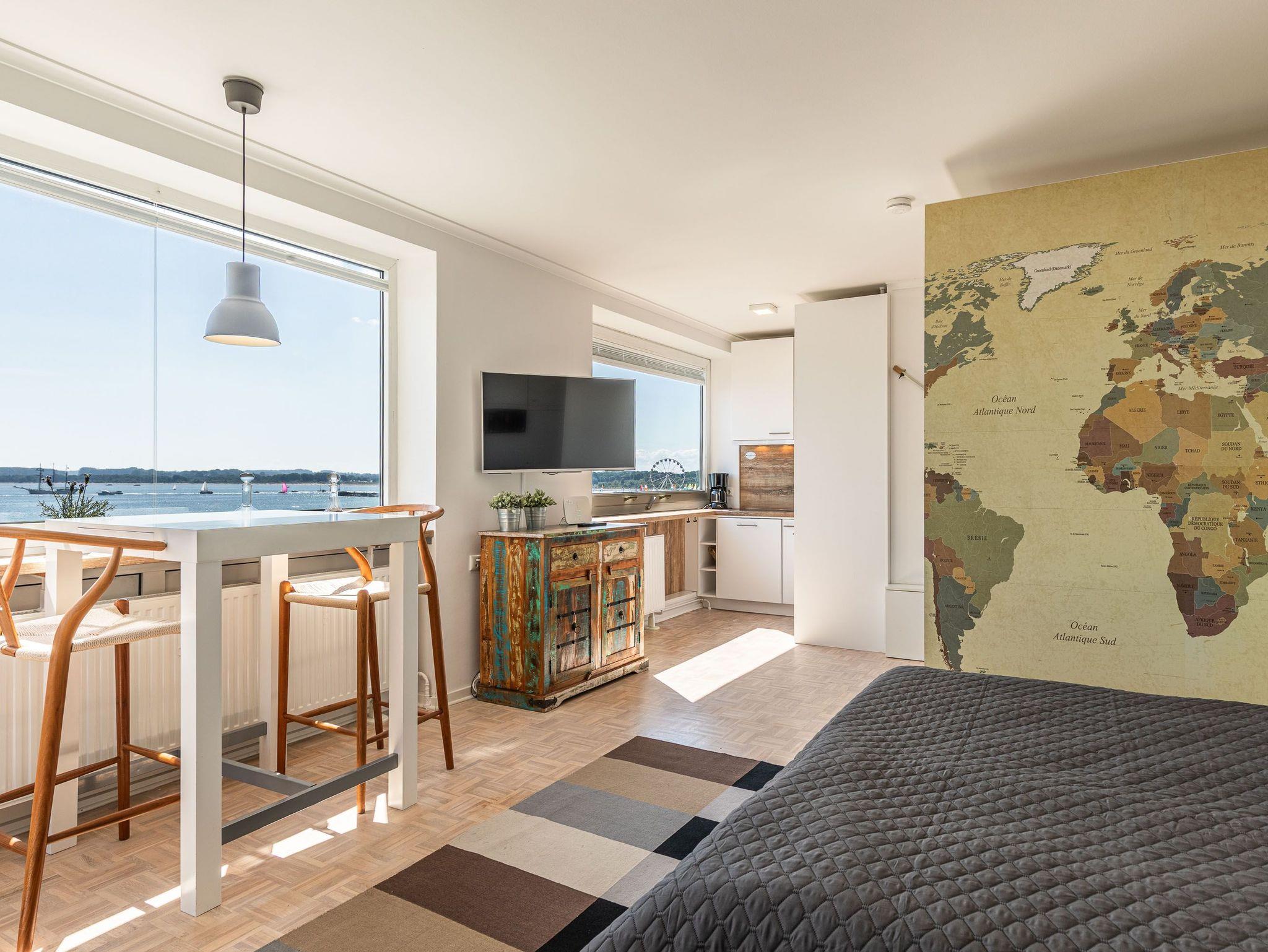 1-Zimmer-Appartement, 4. OG, ca. 40 m² mit Meerblick.