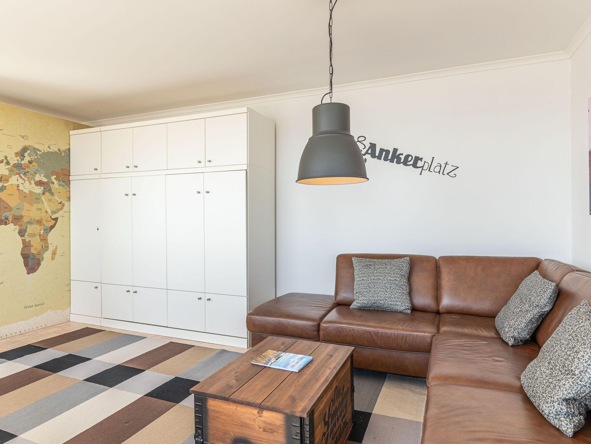 Genießen Sie pures Ostseeflair in der ersten Reihe. Dieses direkt am Strand gelegene Appartement mit Zugang zur Strandpromenade ist modern und geschmackvoll eingerichtet. In diesem sonnendurchfluteten Appartement befinden sich ein Doppelschrankbett (2x 70 cm x 200 cm) und ein Hochtisch mit bequemen Barstühlen. Im Eingangsbereich steht Ihnen ein großer Kleider- und Abstellschrank zur Verfügung. Eine kleine Kommode, sowie eine sehr gemütliche Couch mit Couchtisch runden die liebevoll gestaltete Einrichtung ab. Das Duschbad geht vom Flur ab. Von der offenen Küche, von der Wohnung und dem sonnigen Balkon erleben Sie den uneingeschränkten Panoramablick direkt über den Strand und die gesamte Lübecker Bucht.