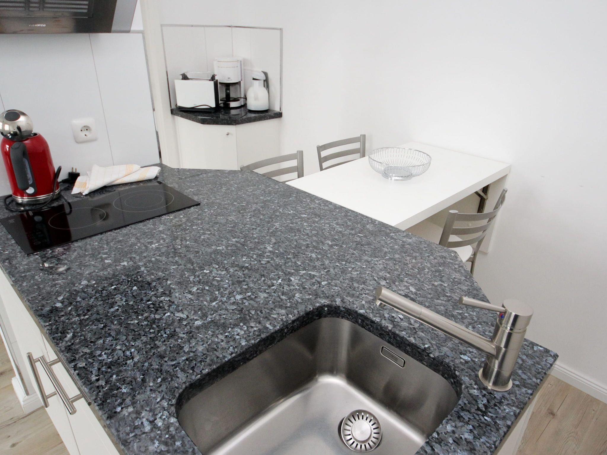 In dieser direkt an der Trave gelegenen und komplett sanierten Ferienwohnung wird Ihr Aufenthalt zu einem absolut tollen Erlebnis. Der helle Wohnraum, in den auch die moderne, offene Küchenzeile mit Esstresen integriert ist, ist sehr geschmackvoll mit einer bequemen Couch mit Tisch und einem Sessel eingerichtet. Vom Wohnzimmer erreichen Sie durch eine Schiebetür ein kleines, gemütliches Zimmer, das mit einer Sitz-/Schlafcouch (180 cm x 200 cm) und Einbauschränken ausgestattet ist. Im Schlafzimmer, das vom Flur abgeht, stehen ein Doppelbett (2x 90 cm x 200 cm) und ein großzügiger Kleiderschrank. Ebenfalls gelangen Sie vom Flur in das schöne Duschbad. Von der sonnigen Dachterrasse, die Sie vom Wohnbereich erreichen, genießen Sie die frische Seeluft und können aus direkter Nähe die Schiffe beobachten. Aktuelle Livebilder vom Ausblick dieses Feriendomizils sehen Sie auf den Webcams 3 und 4. Ein Bäcker befindet sich im Erdgeschoss.