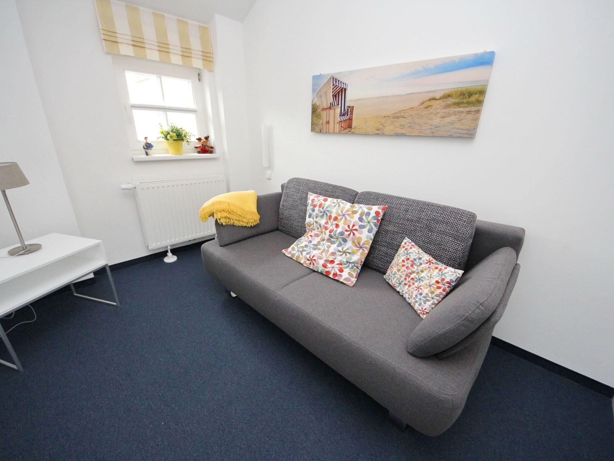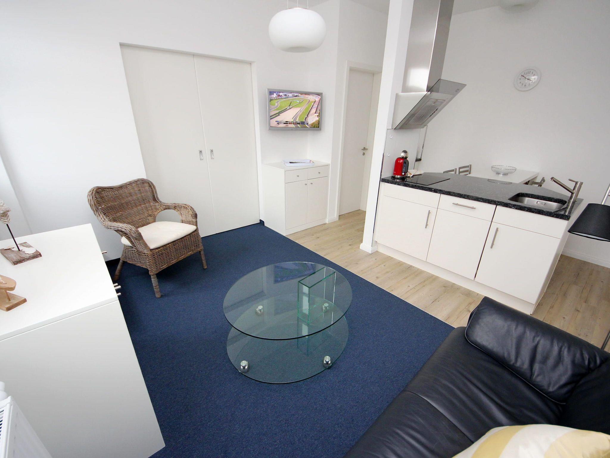 Dachterrasse mit Strandkorb, Küchenzeile, Geschirrspüler, Mikrowelle, Duschbad/WC, Fön, TV, Stereoradio mit CD, kostenl. W-Lan, inkl. Außenstellplatz.