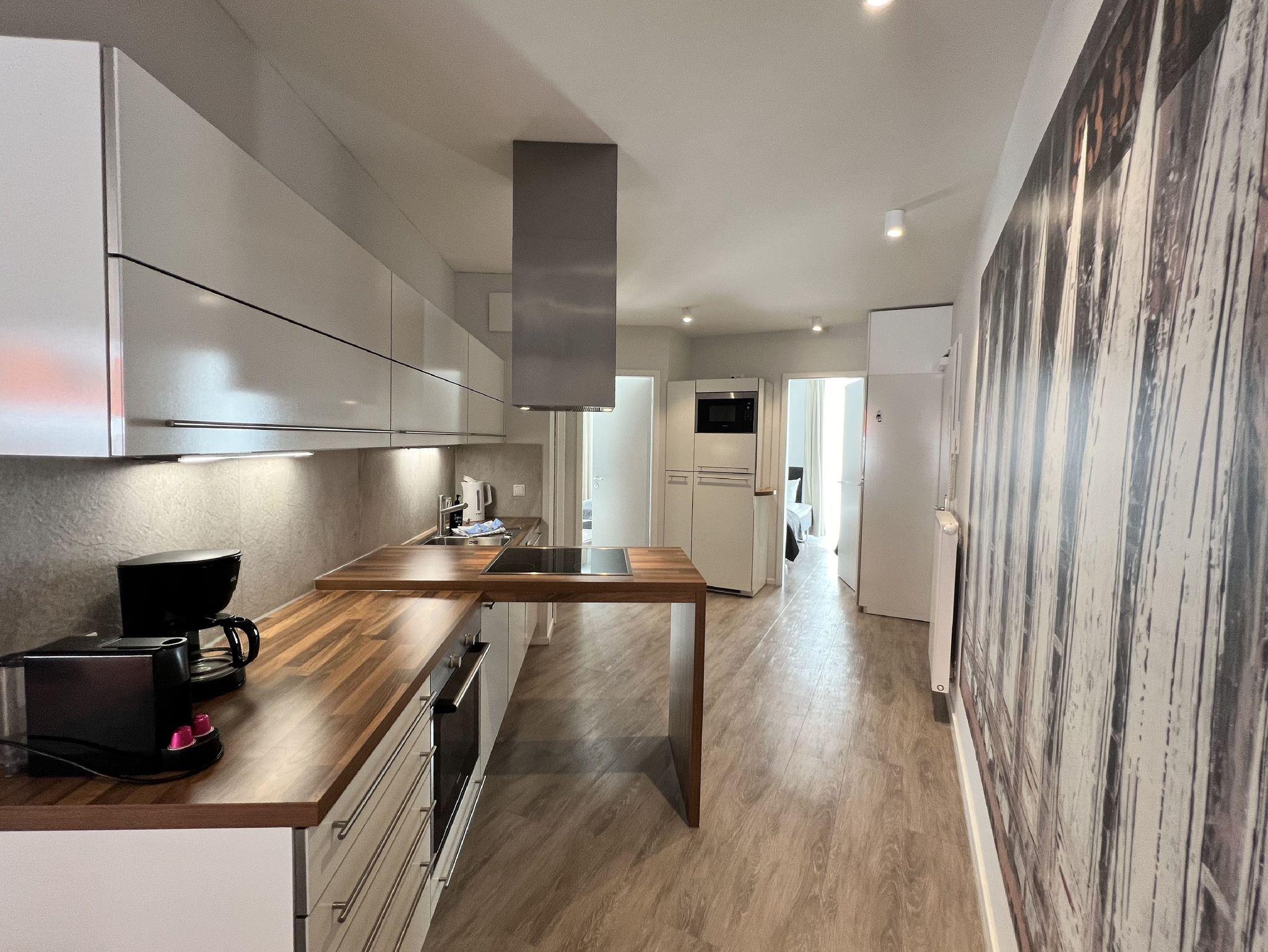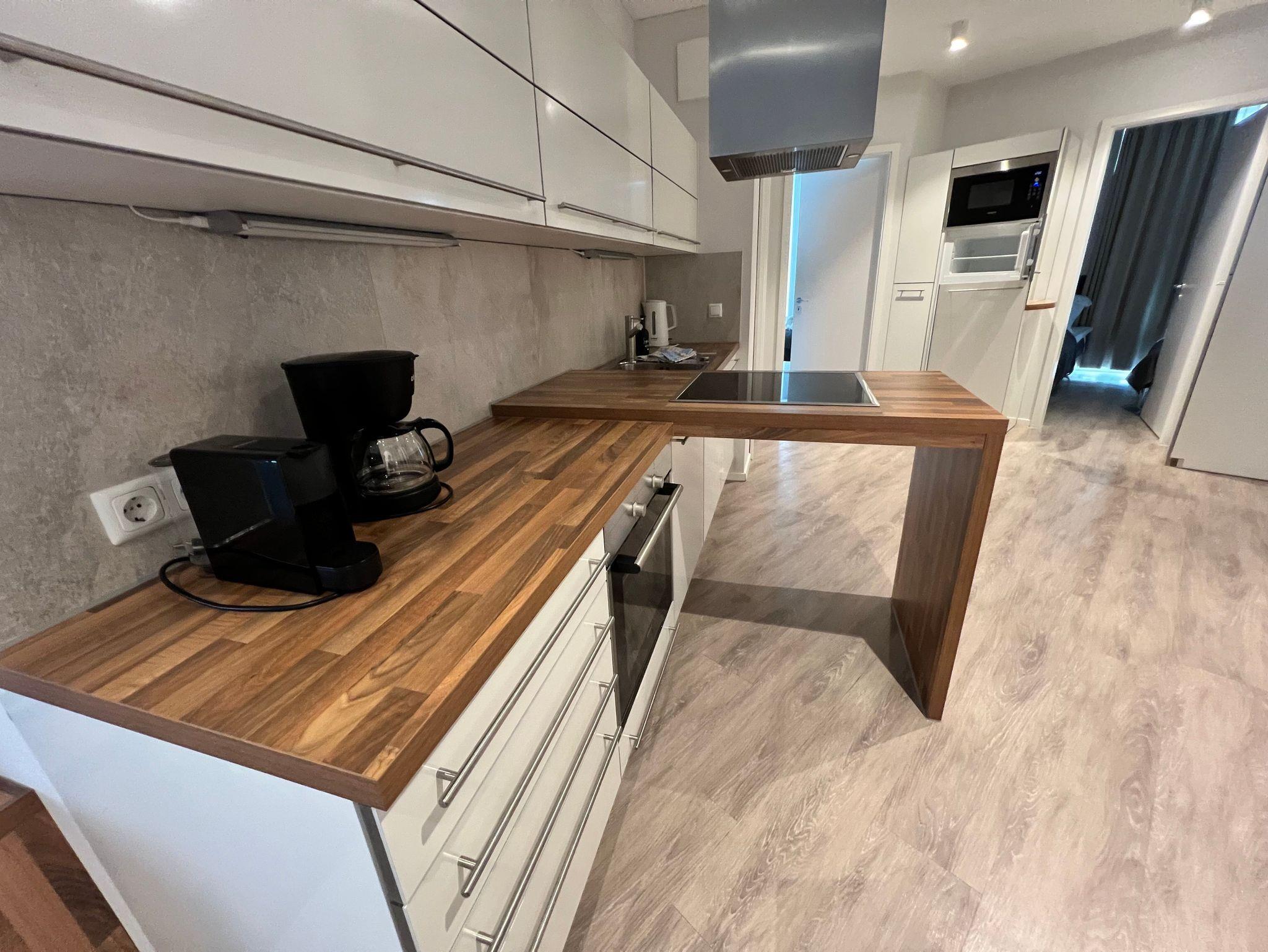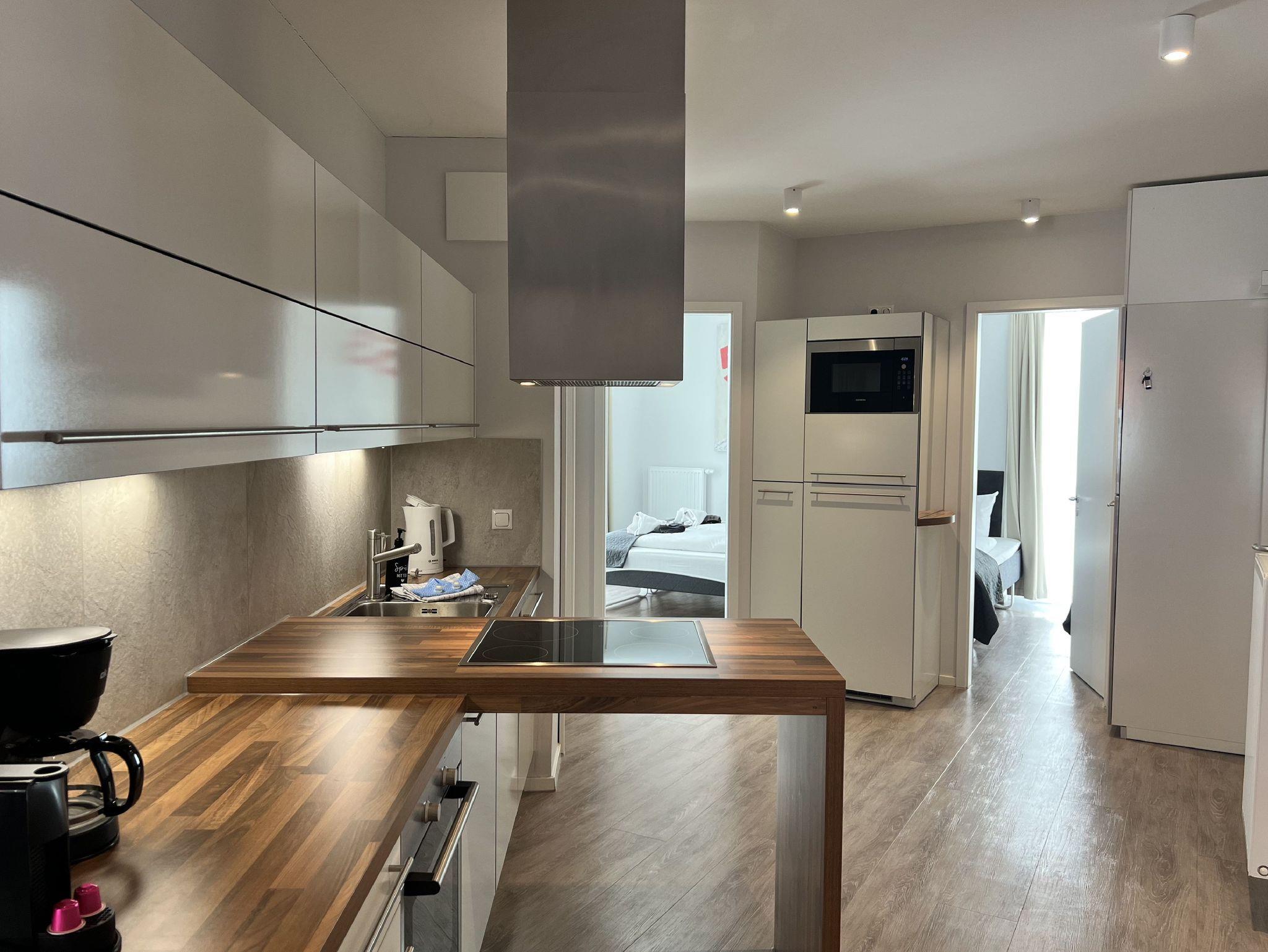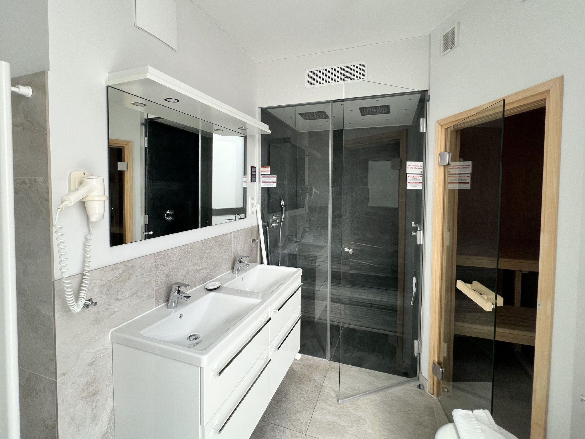 Die Wohnung ist stilvoll, hochwertig und modern eingerichtet. Ein besonderes Highlight ist ihr persönlicher Wellnessbereich mit Sauna, Whirlpool und Dampfbad mit integrierter Doppel-
