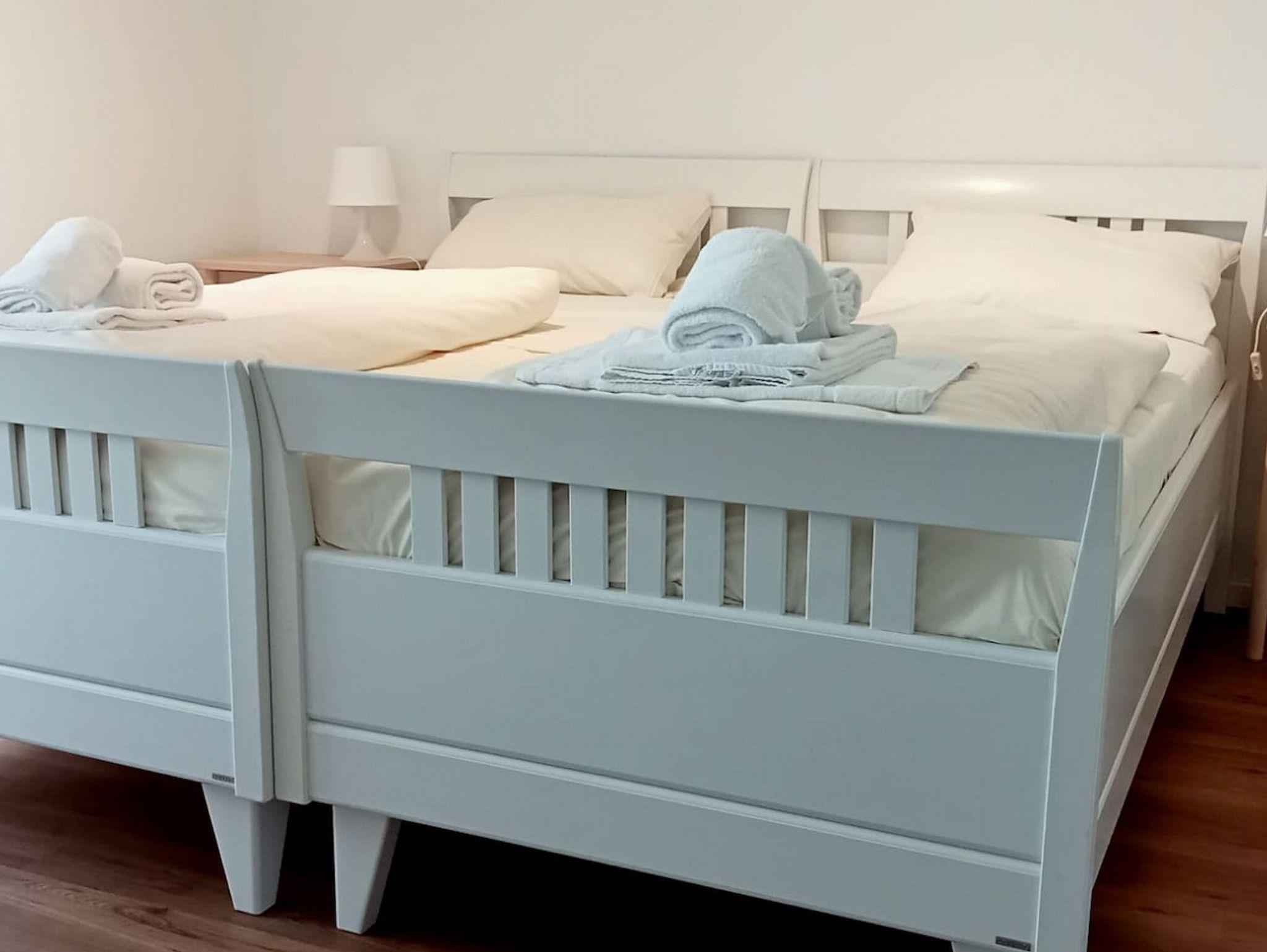 Diese 2022 neu renovierte Ferienwohnung bietet Ihnen einen erholsamen Familienurlaub unmittelbar am Strand. Das Wohnzimmer ist mit einer bequemen Sitz-/Schlafcouch (160 cm x 200 cm), einem gemütlichen Essbereich sowie einem Fernseher ausgestattet. Im Eingangsbereich befindet sich die offene und helle Küche. Die Schlafzimmereinrichtung besteht aus 2 komfortablen Einzelbetten (2x 90 cm x 200 cm) und einem großen Kleiderschrank. Die Wohneinheit verfügt außerdem über ein geräumiges Vollbad. Auf dem Balkon, der vom Wohnzimmer abgeht, können die frische Seeluft und einen Teilblick aufs Meer genießen.