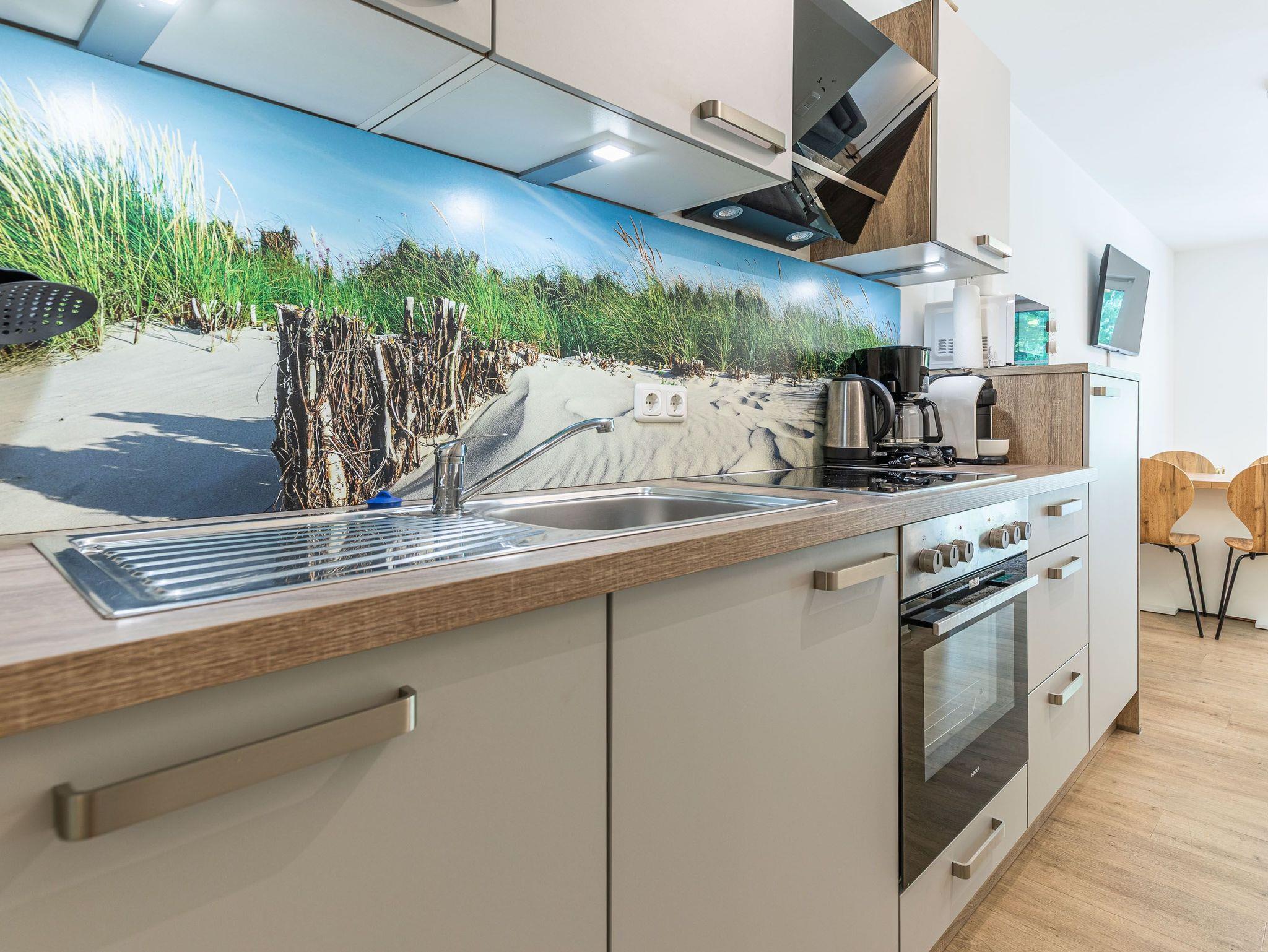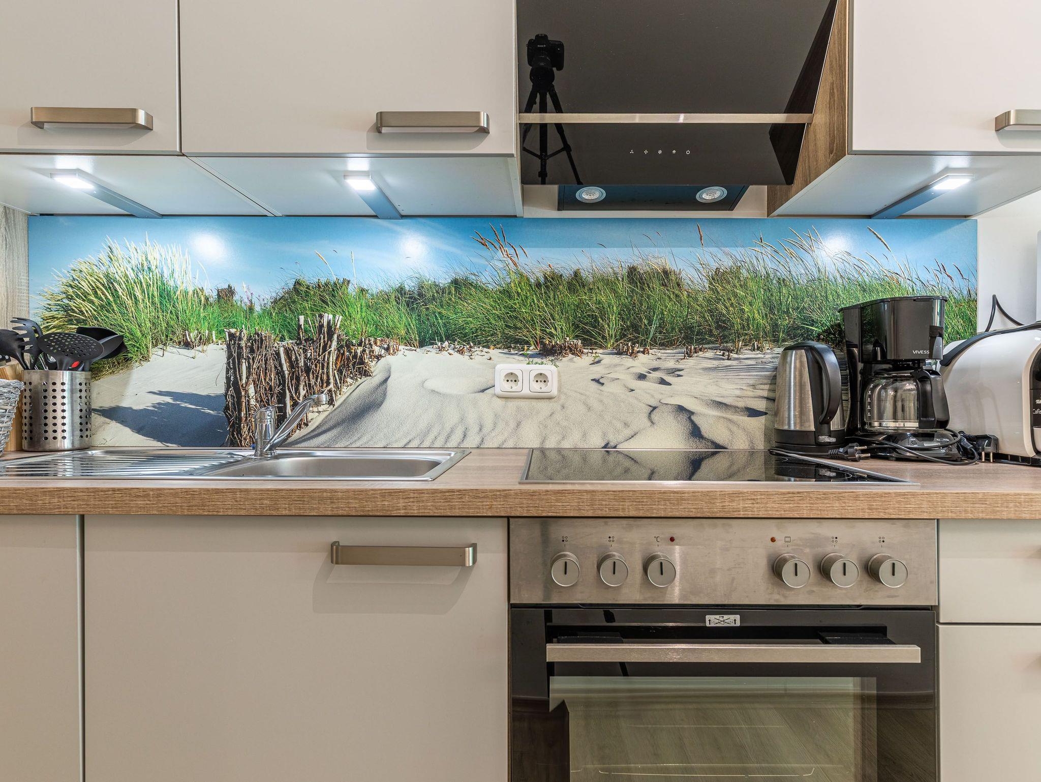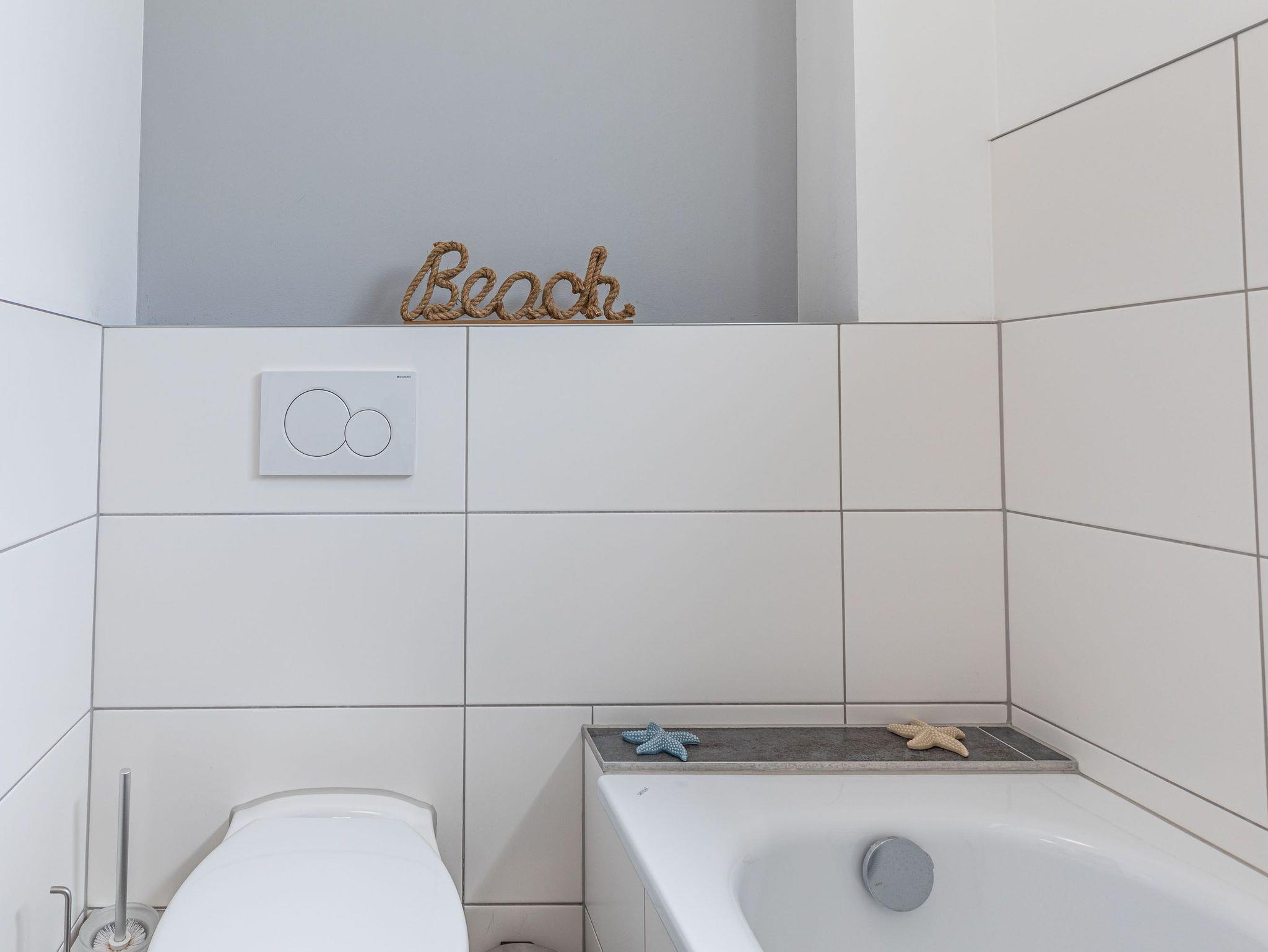 Terrasse, Fußbodenheizung, Küchenzeile, 2 Schlafzimmer, Geschirrspüler, 2xBäder (1x Duschbad/WC, 1x Vollbad/WC), Fön, TV, Strandkorb auf der Terrasse, kostenl. W-Lan, inkl. PKW-Außenstellplatz vor dem Haus, Wallbox auf dem Grundstück (gegen Gebühr).