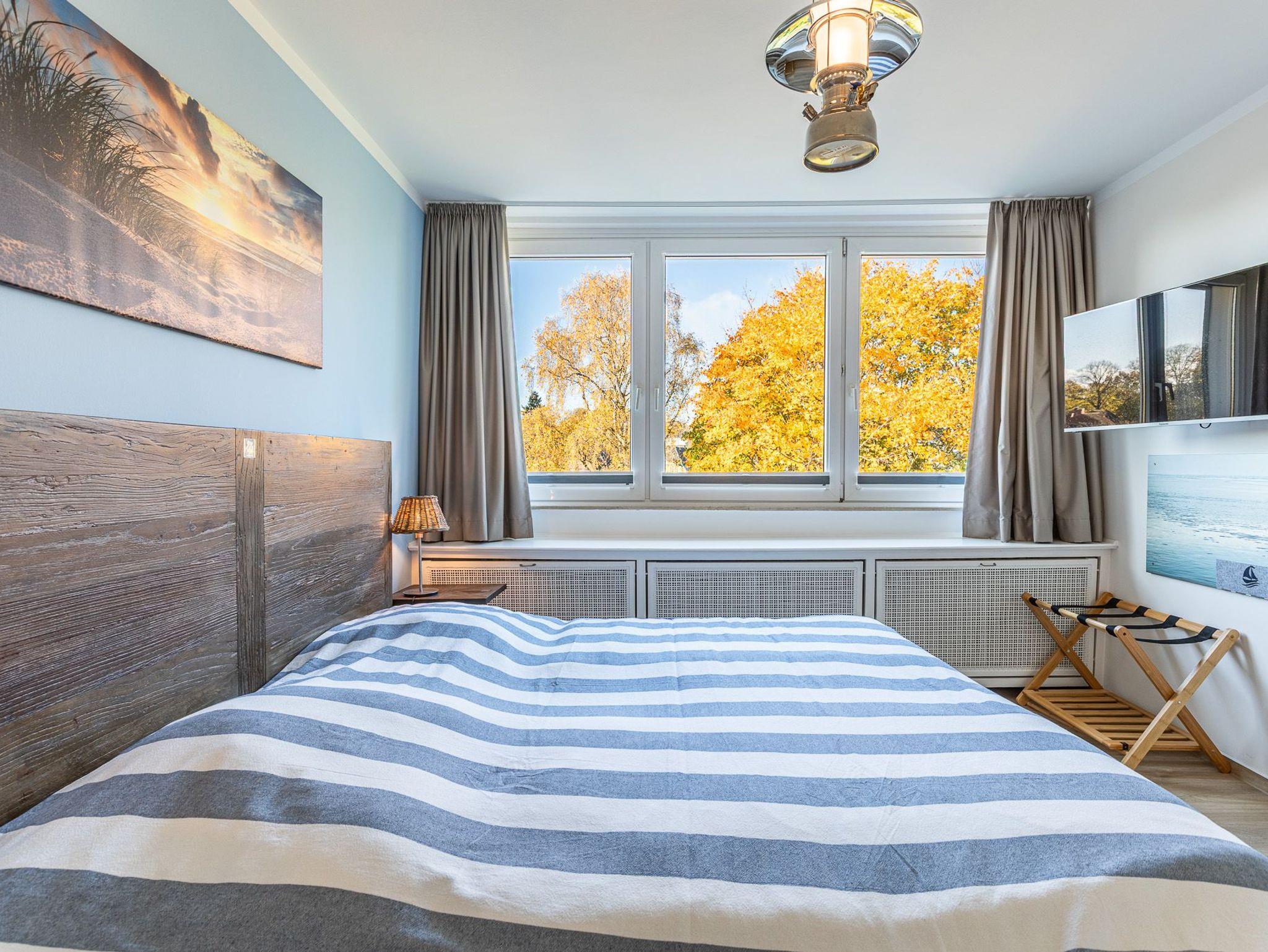 Hier erwartet Sie eine komplett neu und hochwertig eingerichtete Wohnung in der zweiten Reihe zum Strand in der Kaiserallee. In diesem stilvoll und modern eingerichteten Urlaubsdomizil verbringen Sie einen unvergesslichen Urlaub. Der maritim gehaltene Wohnbereich ist mit einer gemütlichen Eckcouch mit Tisch, einem Sideboard sowie einer Essecke ausgestattet. Die Küche mit Meerblick befindet sich direkt angrenzend zum offenen Wohn- und Essbereich, von dem Sie auch den Balkon erreichen. Die beiden Schlafzimmer sind jeweils mit einem bequemen Doppelbett (2x 90 cm x 200 cm) und einem Einbauschrank ausgestattet. Das Gäste/WC geht vom Flurbereich ab, das helle Duschbad erreichen Sie von einem der Schlafzimmer. Vom herrlichen Balkon haben Sie einen wunderschönen seitlichen Blick auf die Ostsee und die romantische Kaiserallee.
