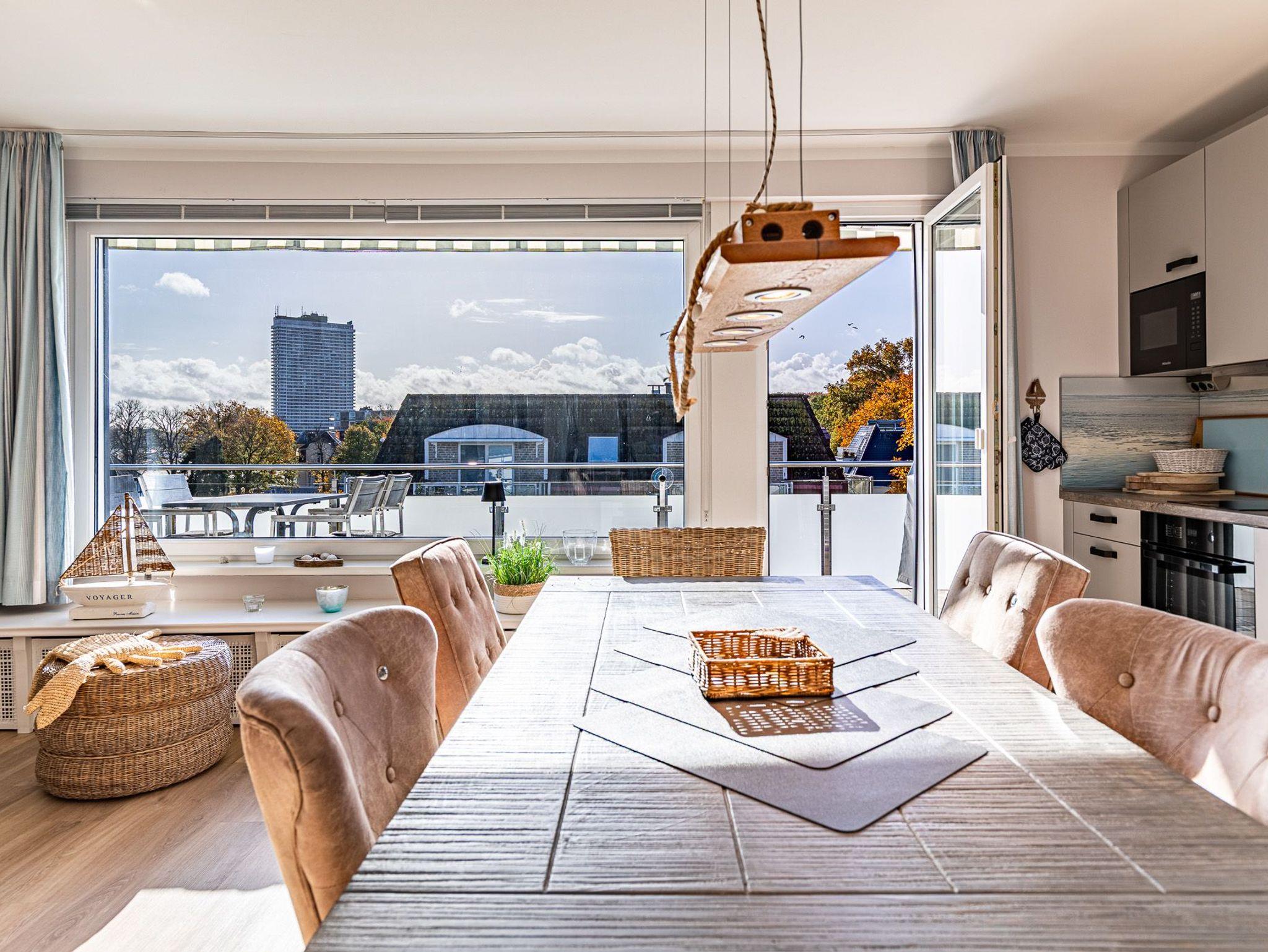 Moderne 3-Zimmer-Ferienwohnung mit seitlichem Meerblick und Balkon nahe dem Strand in Lübeck-Travemünde.