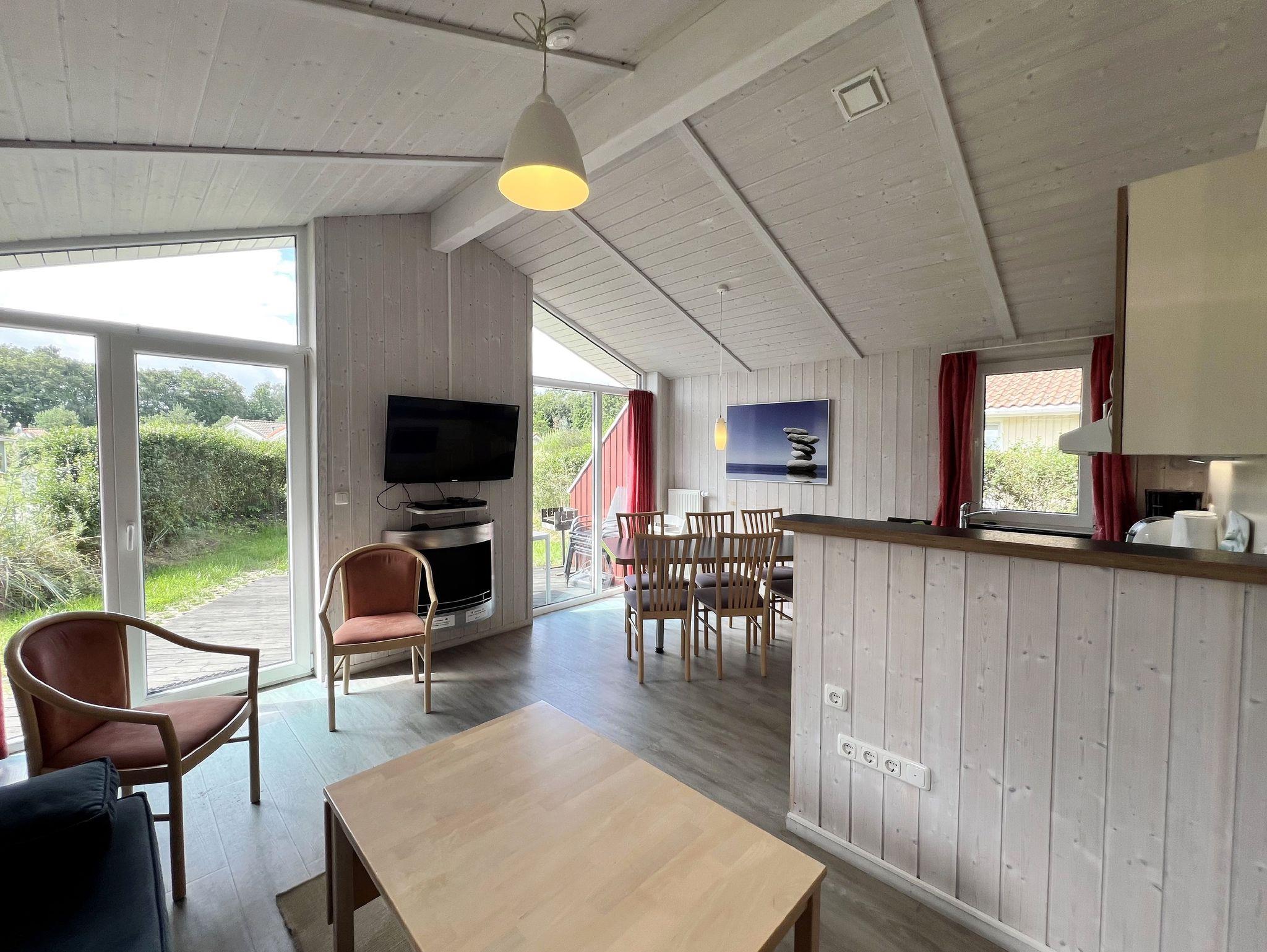 Das Wohnzimmer und die Küche liegen in offener Verbindung miteinander. Im Wohnzimmer finden Sie einen Bioethanolofen sowie den Ausgang auf die Terrasse. Das Ferienhaus bietet ausreichend Platz für bis zu 4 Personen und verfügt über 2 Schlafzimmer, ein Bad mit Dusche und Sauna sowie eine voll ausgestattete Küche.
