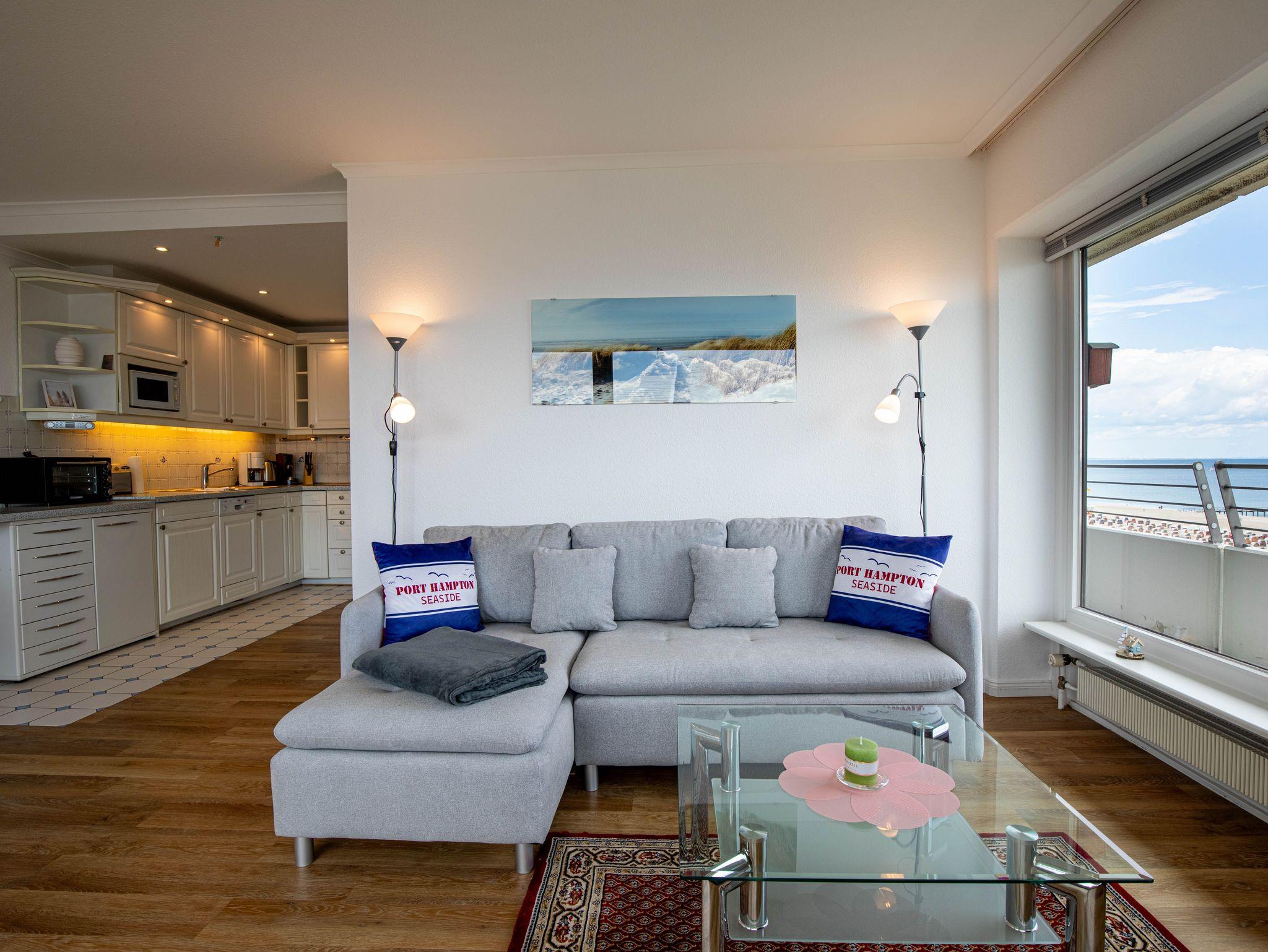 Komfortables 2-Zimmer-Eck-Appartement in Travemünde mit Meerblick und direkter Strandlage.