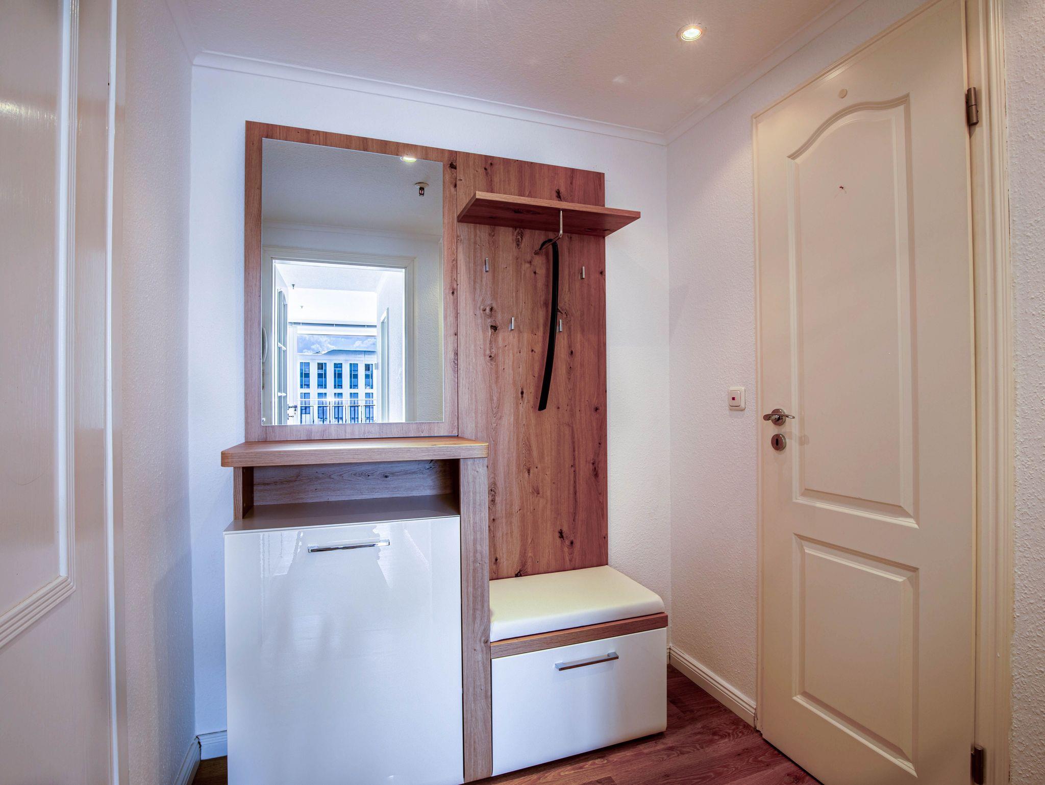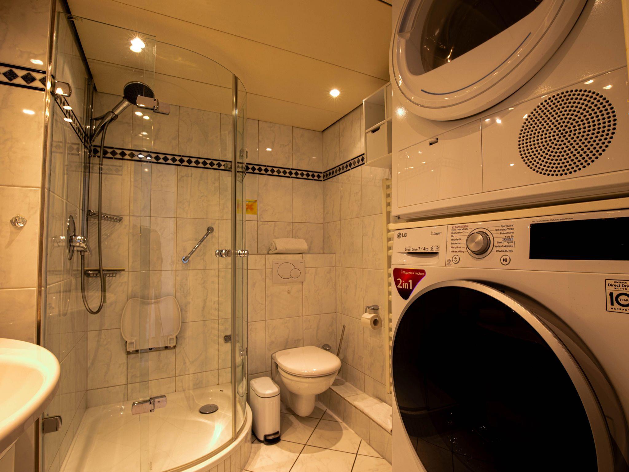 Markisen, Küche, Geschirrspüler, Mikrowelle, Vollbad/WC, Fön, TV,Waschmaschine,Waschtrockner, kostenl. W-Lan, Aufzug, inkl. Tiefgaragenstellplatz (Einfahrtshöhe: 1,85 m).