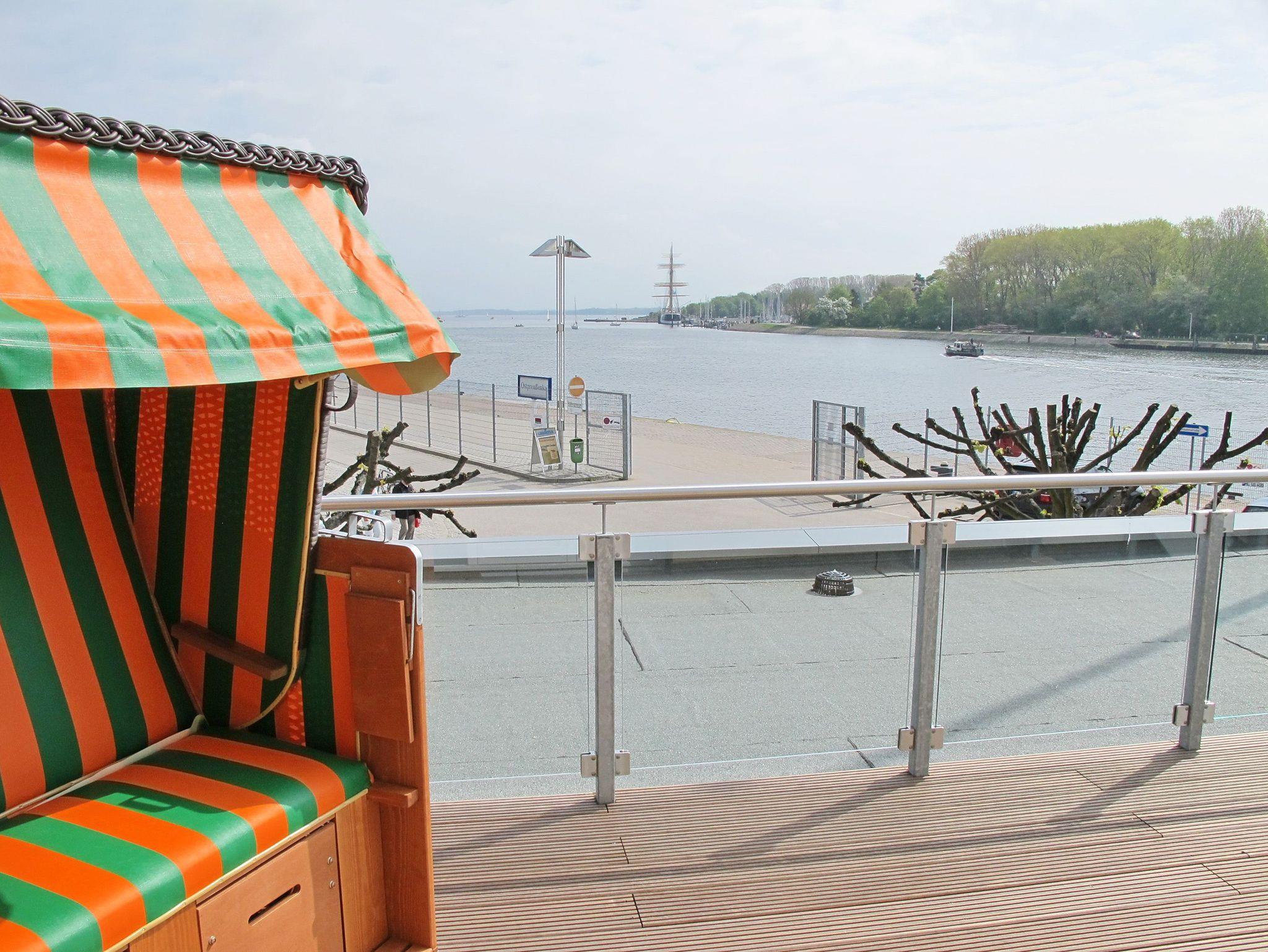 Moderne 2-Zimmer-Ferienwohnung mit Traveblick und zwei Dachterrassen in Lübeck-Travemünde.