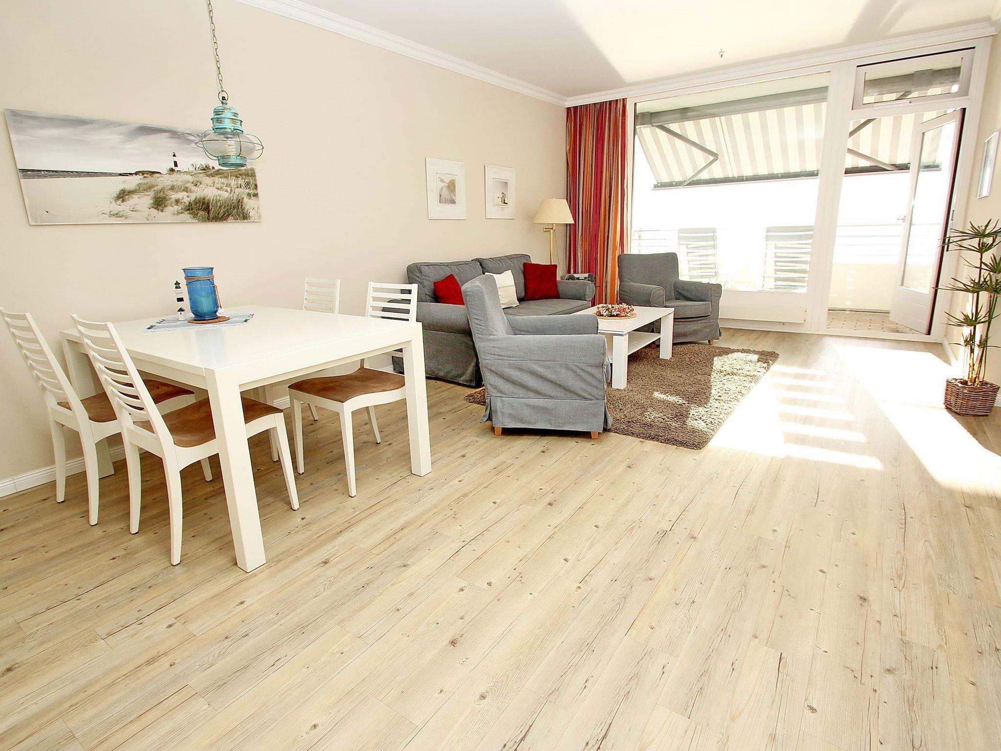 Exklusiv über den Wolken und direkt an der Trave wohnen Sie in diesem komfortablen Appartement. Die Wohnung bietet jeglichen Komfort und Bequemlichkeit für einen erholsamen Urlaub an der Ostsee. Hochwertig und geschmackvoll ist die Einrichtung für Ihren Aufenthalt zum Wohlfühlen ausgewählt. Im Wohnzimmer stehen eine Sitz-/Schlafcouch (160 cm x 200 cm), zwei Sessel, eine Anrichte sowie eine Essecke neben der offenen Einbauküche. Im Schlafzimmer befinden sich ein Doppelbett (2x 90 cm x 200 cm), ein Einbauschrank und eine Kommode. Das moderne Bad mit vielen Extras ist einzigartig. Vom Wohn- und Schlafzimmer haben Sie einen Zugang zum Balkon. Hier genießen Sie einen traumhaften Ausblick zur Trave mit der Passat, zur Lübecker Bucht und zur Hafeneinfahrt mit lebhaftem Schiffsverkehr.