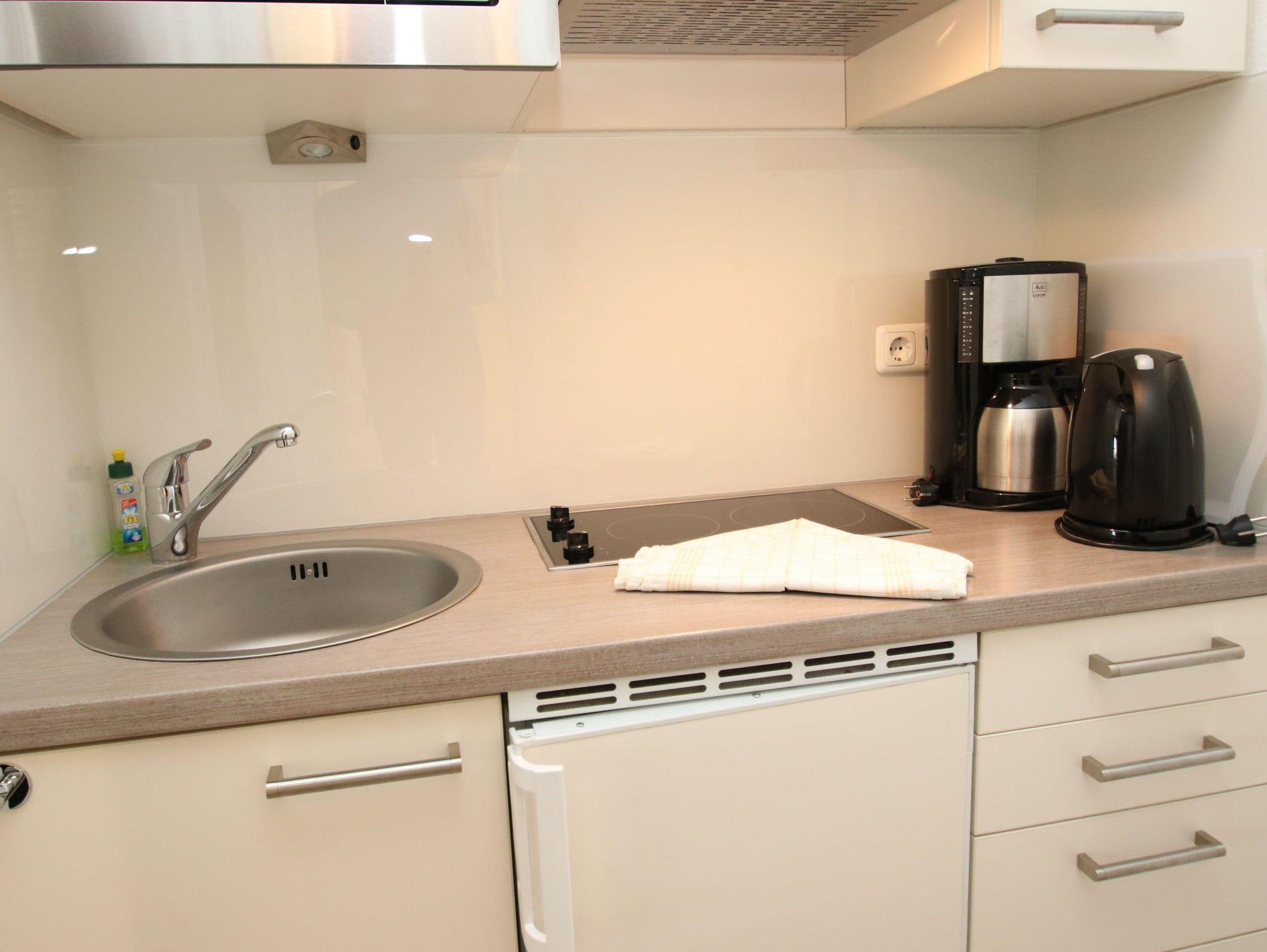 Balkon, elektr. Markise, Küchenzeile, Mikrowelle, Duschbad/WC, Fön, TV, Radio, Aufzug, inkl. Tiefgaragenstellplatz (Einfahrtshöhe: 1,85 m).