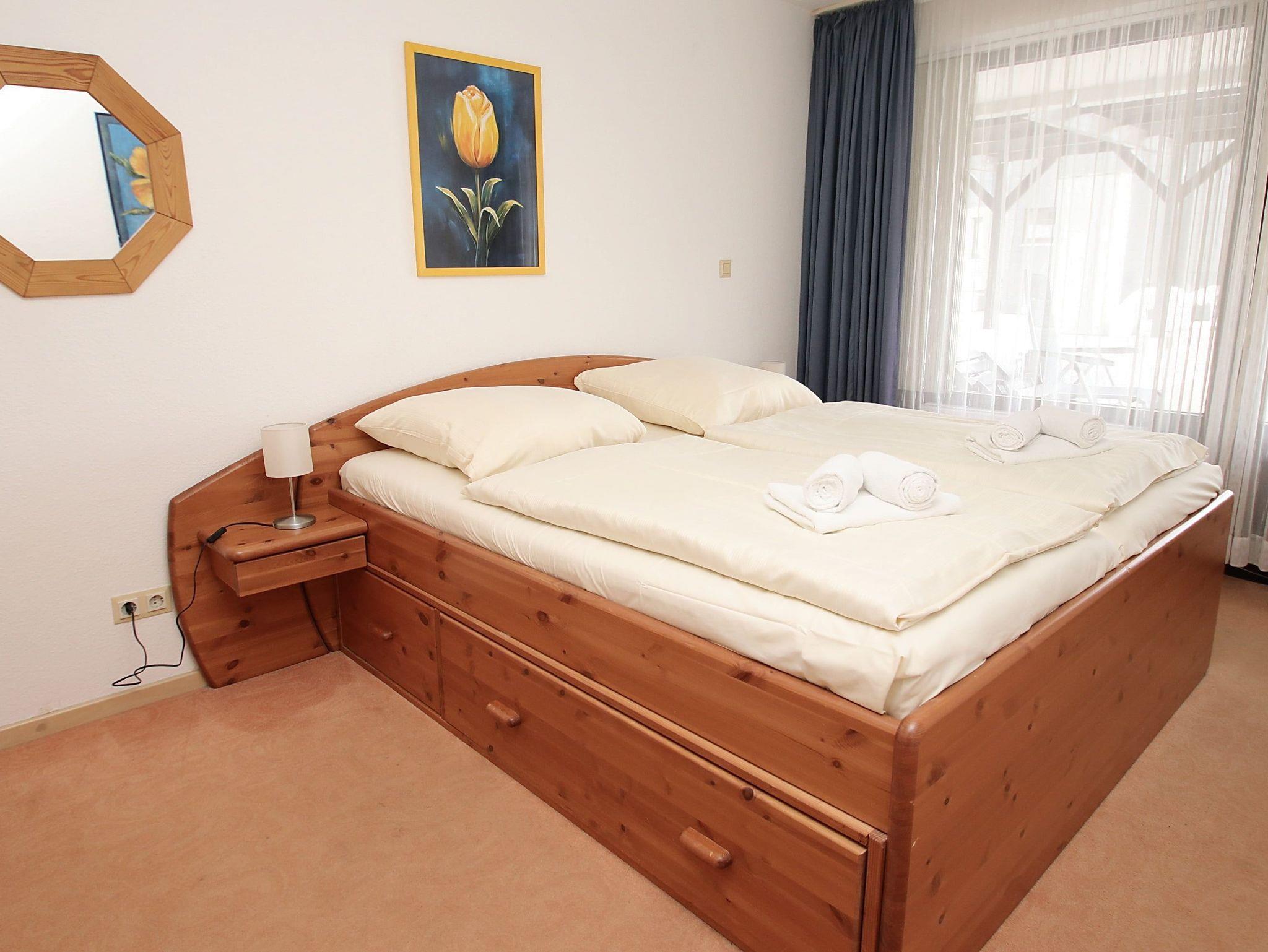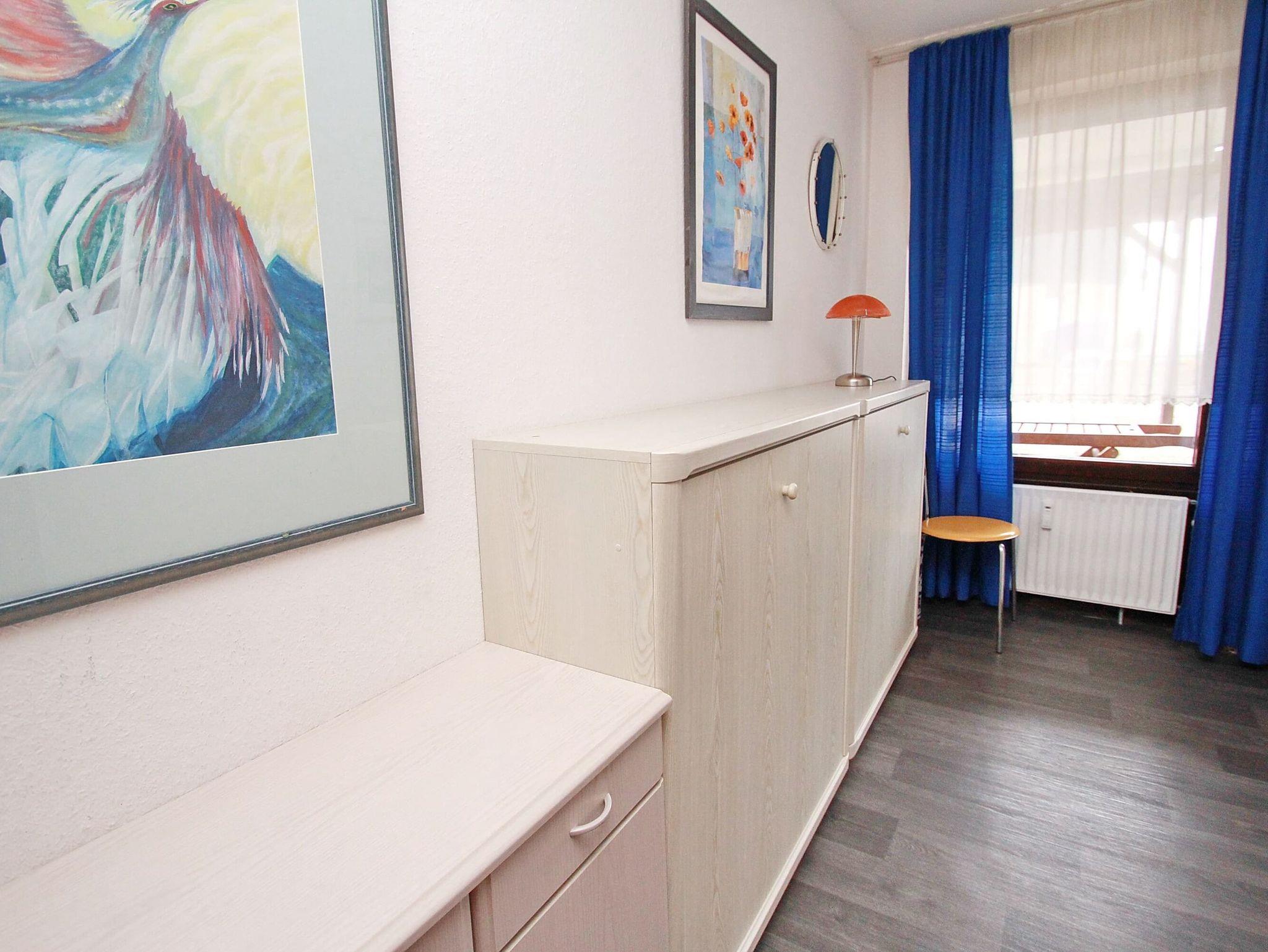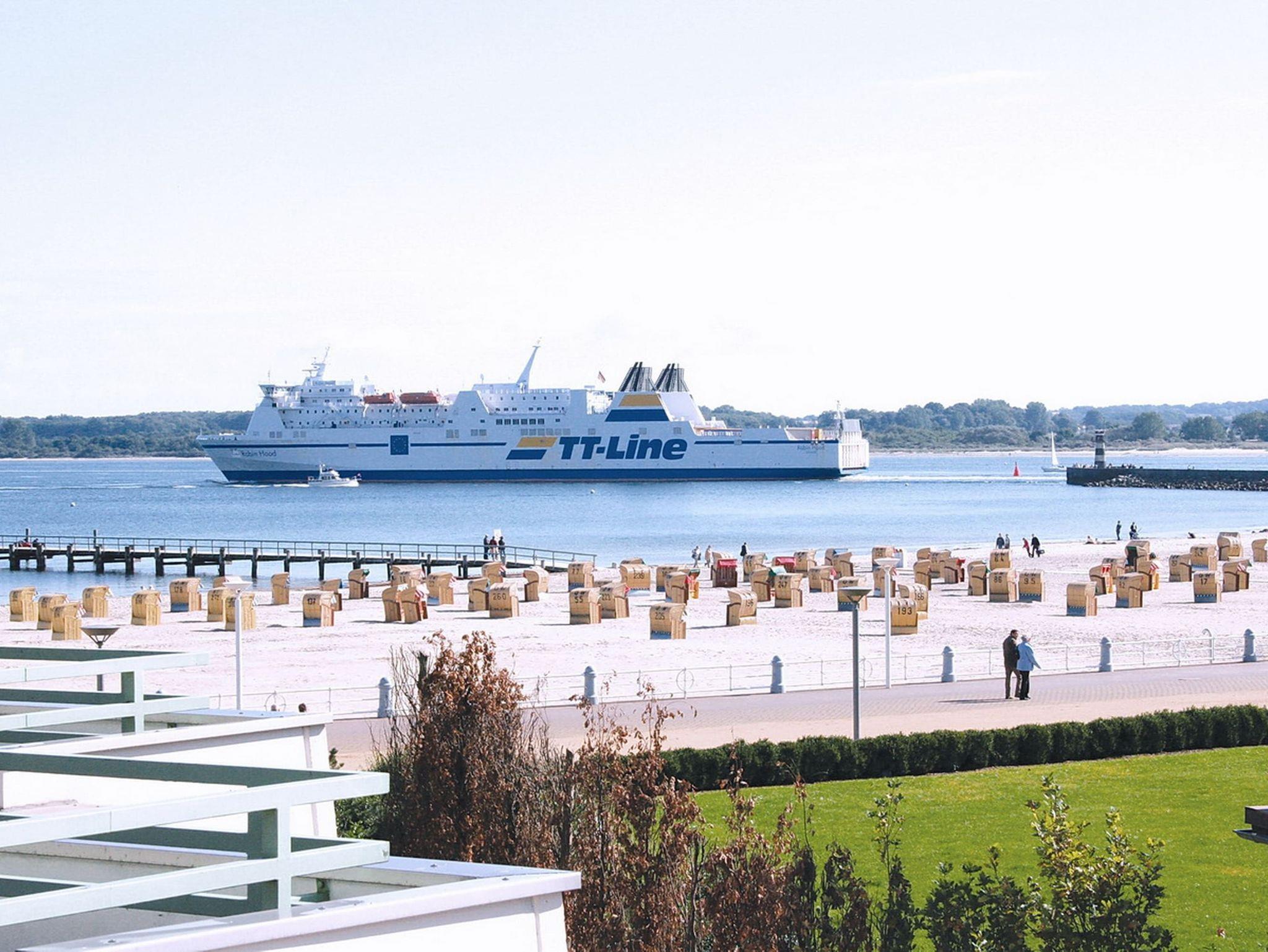 Diese strandnahe, ruhige Ferienwohnung mit tollem Meerblick und freundlicher Ausstattung in der Kaiserallee ist einzigartig. Die ansprechende Wohnung in der 2. Etage erreichen Sie sowohl vom Hauseingang als auch von der Tiefgarage direkt mit dem Aufzug. Das helle Wohnzimmer besteht aus einer Eckcouch mit Tisch und einer schönen Essecke mit Durchreiche und Sichtverbindung zur Einbauküche. Im Schlafzimmer stehen ein bequemes Doppelbett (2x 90 cm x 200 cm) und ein Kleiderschrank. Der kleine Schlafraum ist eingerichtet mit einem Einzelschrankbett (90 cm x 190 cm) und einem Wäscheschrank. Alle Räumlichkeiten sowie das Bad gehen vom Flur ab. Vom Wohn- und Schlafzimmer erreichen Sie die große, sonnige Dachterrasse. Hier genießen Sie den Meerblick und den lebhaften Schiffsverkehr.