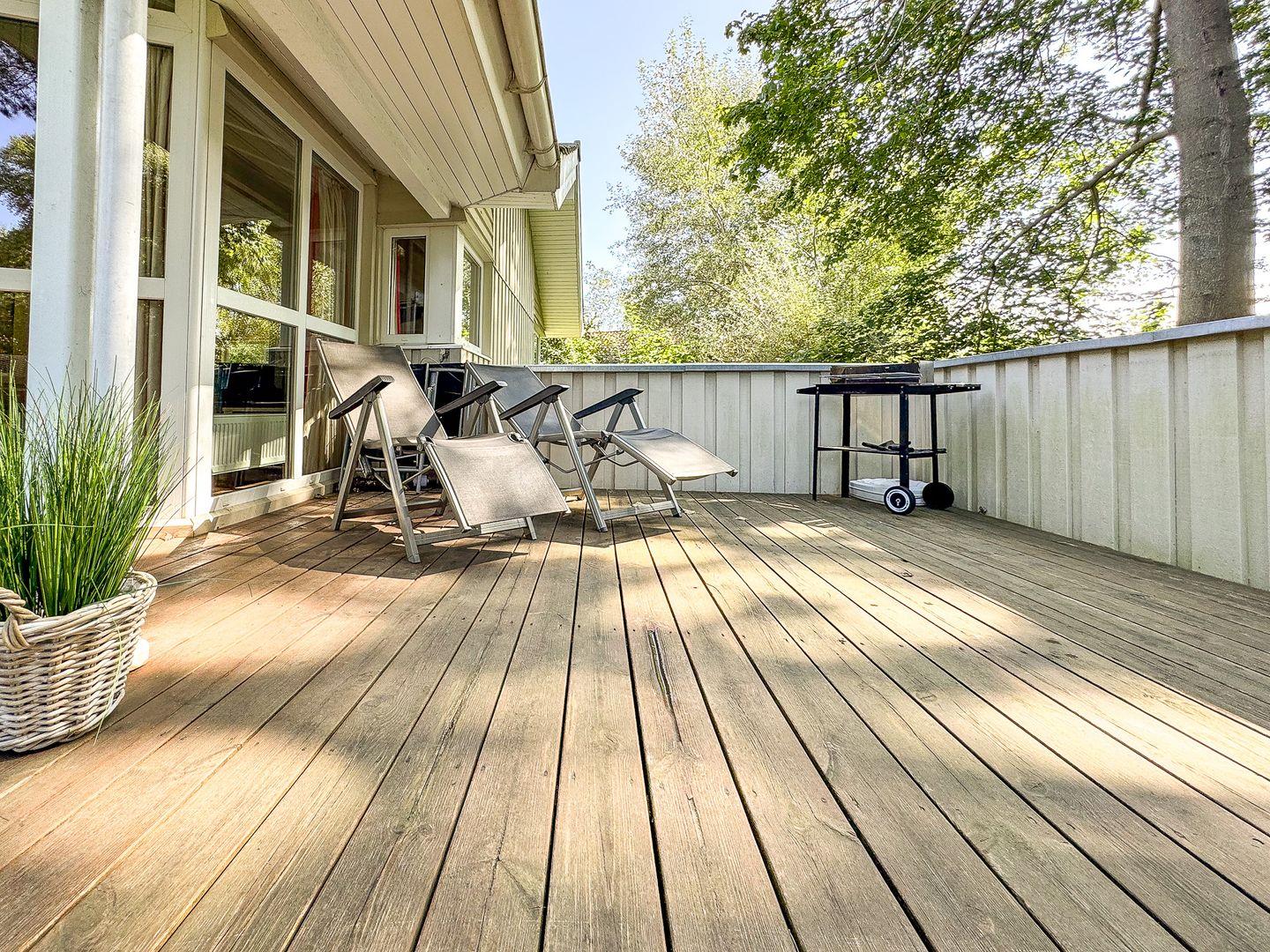 Die riesige Terrasse ist ein echtes Highlight! Ausgestattet mit Gartenmöbeln und einem Grill, ist sie der perfekte Ort für gesellige Grillabende und entspannte Sonnenstunden. Ob ein Buch auf der Terrasse lesen oder toben im Garten: Aktive und passive Erholung findest Du auf diesem fantastischen Grundstück.