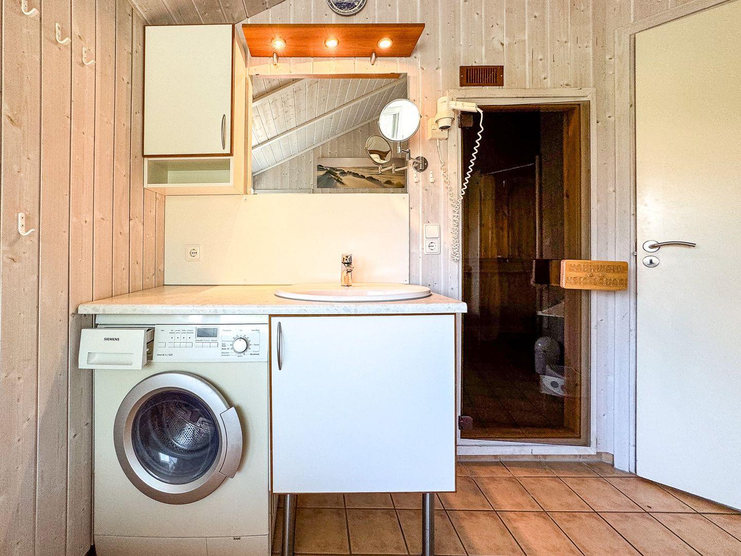 Spülmaschine, Waschmaschine und Trockner sind vorhanden.