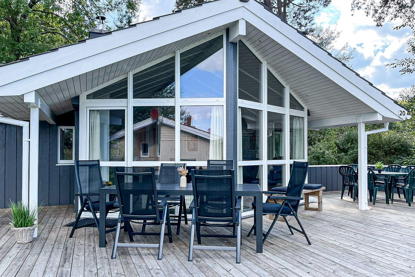 Das Ferienhaus 20 liegt strandnah und zeitgleich im Grünen: Zum Strand sind es keine 150 Meter und das Haus ist eingebettet von Bäumen. Zeitgleich hat die Sonne keine Mühe, die riesige Terrasse zu bescheinen! Dieses Ferienhaus bietet mit ca. 109 m² Platz für Familien und Freunde. Die teilweise überdachte Terrasse ist ein echter Wohlfühlort, an dem man sich gerne nach ausgedehnten Strandbesuchen erholt!
