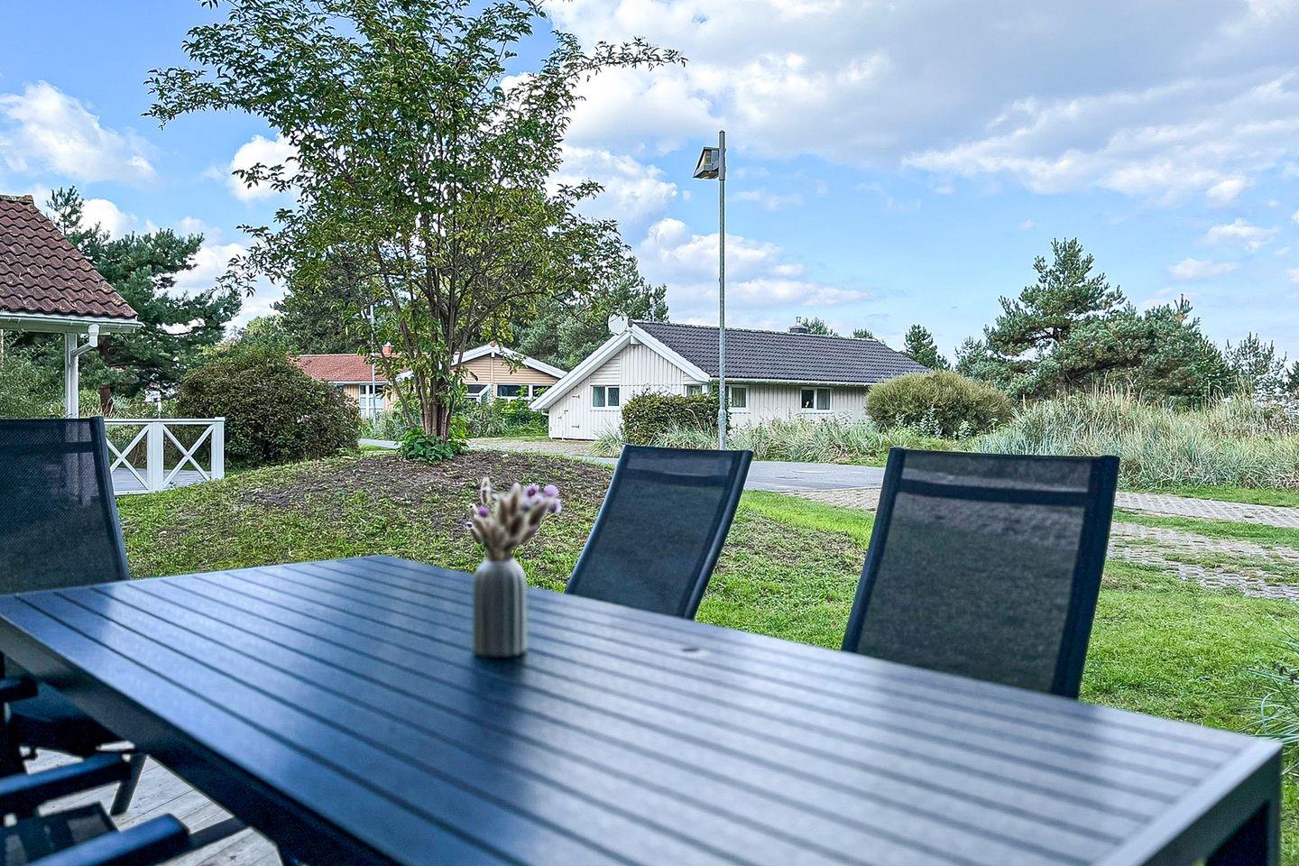 Ferienhaus 20 in Lübeck-Travemünde bietet Sauna, Whirlpool und Meerblick auf großzügiger Terrasse.