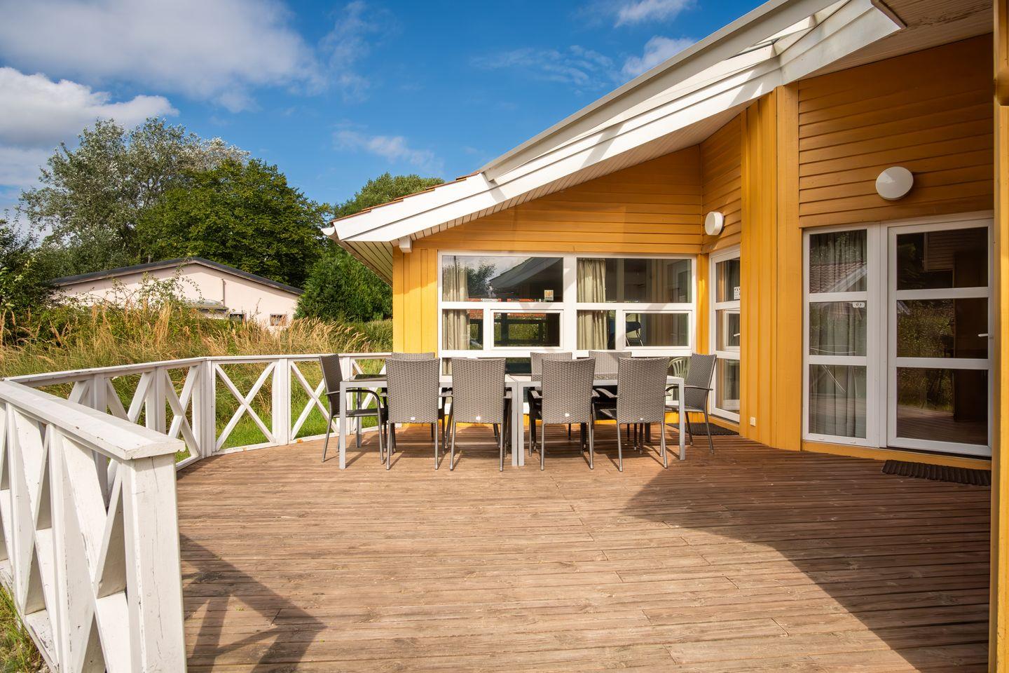 Das Ferienhaus 5 mit Indoor-Pool, Sauna und Whirlpool liegt in einer ruhigen Lage in erster Reihe mit Gartenblick. Es ist ca. 172 m² groß und ist für bis zu 10 Personen zugelassen. Es handelt sich um eine Ferienunterkunft über das gesamte Erdgeschoss verteilt mit einem Hauseingang. Großzügig gestaltet sind die beiden Terrassen. Das Grillequipment sorgt für einen glücklichen Familienurlaub am Priwall! Haustiere sind nicht erlaubt.