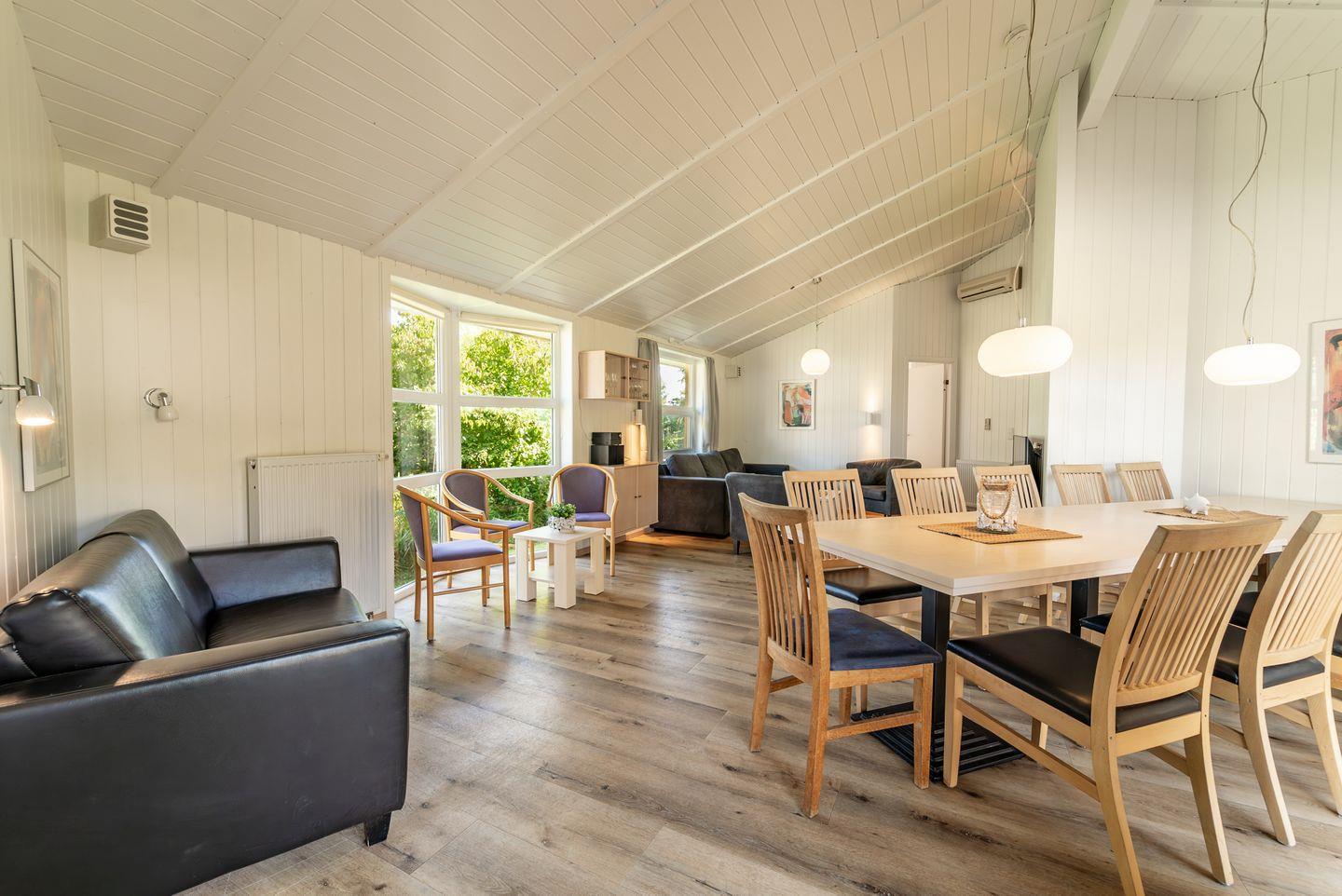Der offene Wohn- und Essbereich ist der perfekte Ort, um zusammenzukommen. Zwei Sofaecken und ein einladender Essbereich schaffen eine gemütliche Atmosphäre. Der Kaminofen sorgt für wohlige Wärme, während der Flachbild-TV, das Radio mit CD-Spieler für Unterhaltung sorgen. Große Fenster mit Vorhängen garantieren eine angenehme Privatsphäre.