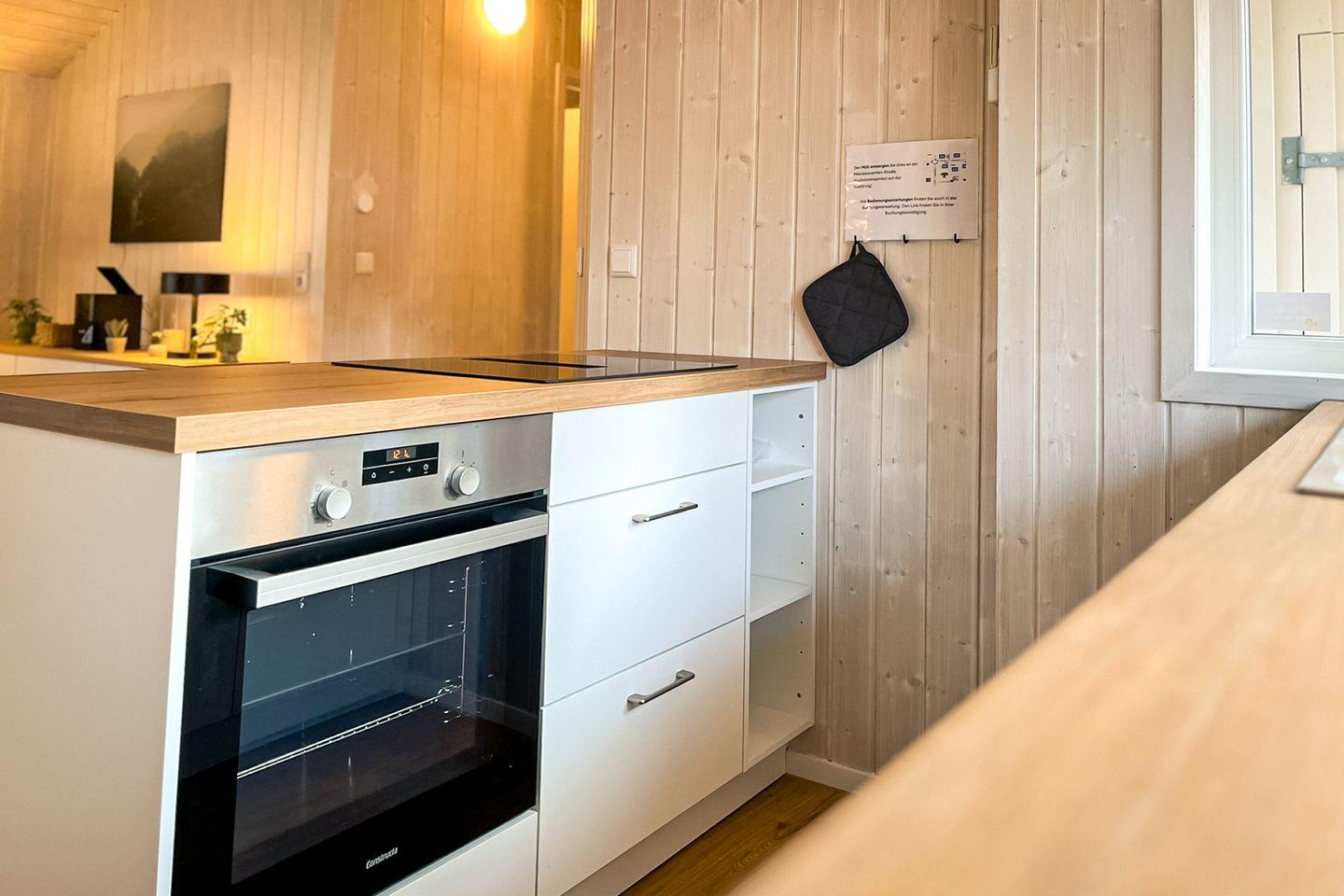 Die offene Kücheninsel ist ein echter Mittelpunkt des Hauses. Hier findest Du alles, was Du für die Zu- und Nachbereitung leckerer Mahlzeiten benötigst: