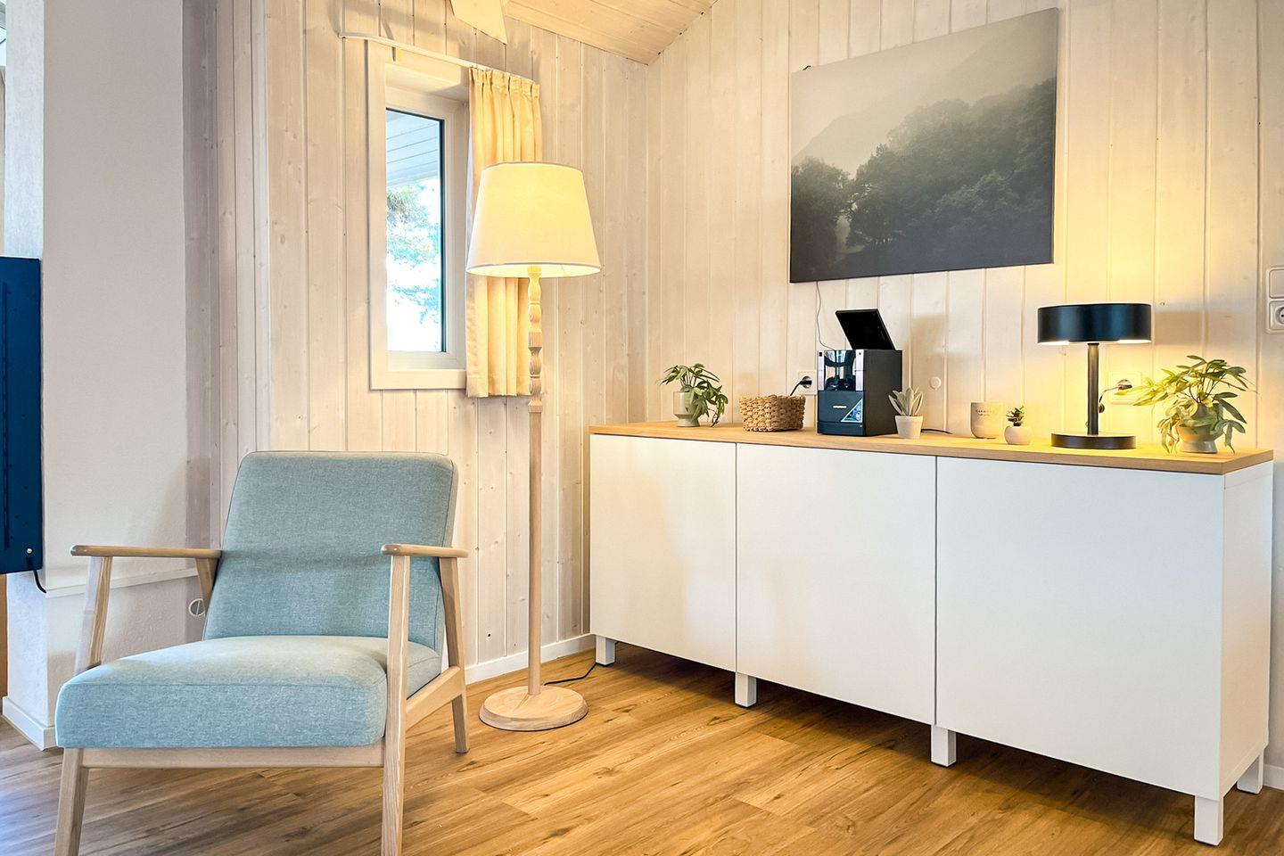 Der großzügige Wohnbereich mit einem Schlafsofa ist der perfekte Ort, um Zeit miteinander zu verbringen. Die lichtdurchflutete Gestaltung schafft ein angenehmes Ambiente, in dem Du Dich sofort wohlfühlen wirst.