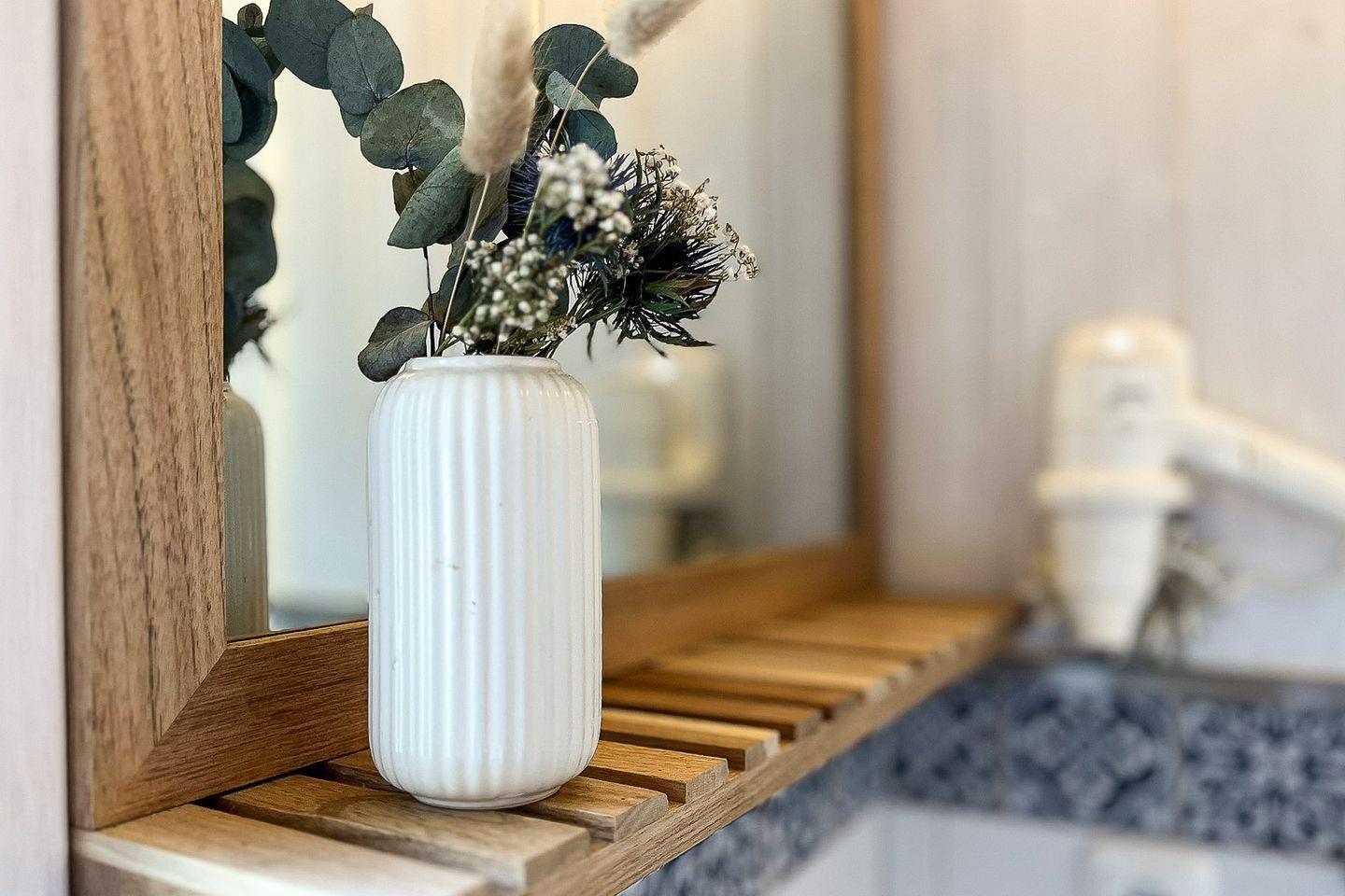 Die möblierte Terrasse mit Sonnenschirm ist Dein Platz im Freien: Starte hier entspannt in den Tag oder genieße abends ein gemeinsames Essen. Ein Holzkohlegrill sorgt für gesellige Stunden beim Grillen. Für zusätzlichen Komfort sorgt das Badezimmer, das Anfang 2025 frisch saniert wurde und nun mit moderner Ausstattung überzeugt.