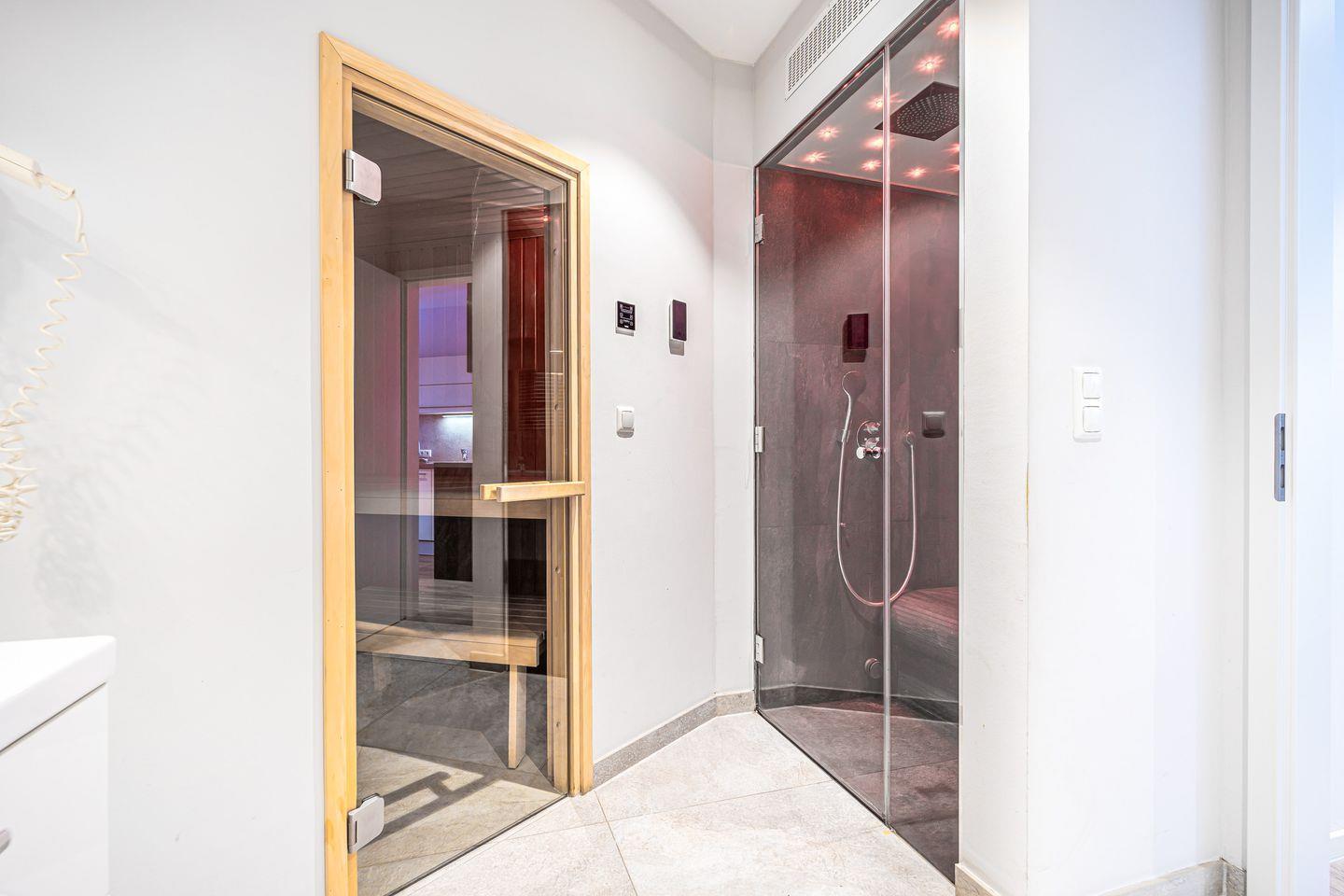 Ein Highlight ist Dein ganz persönlicher Wellnessbereich im Badezimmer: Sauna, moderne Badewanne mit wohltuender Whirlpool-Funktion und ein Dampfbad mit integrierter Regendusche sorgen für pure Entspannung.