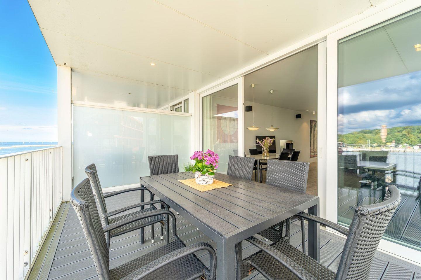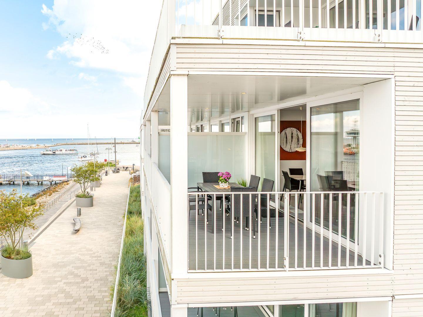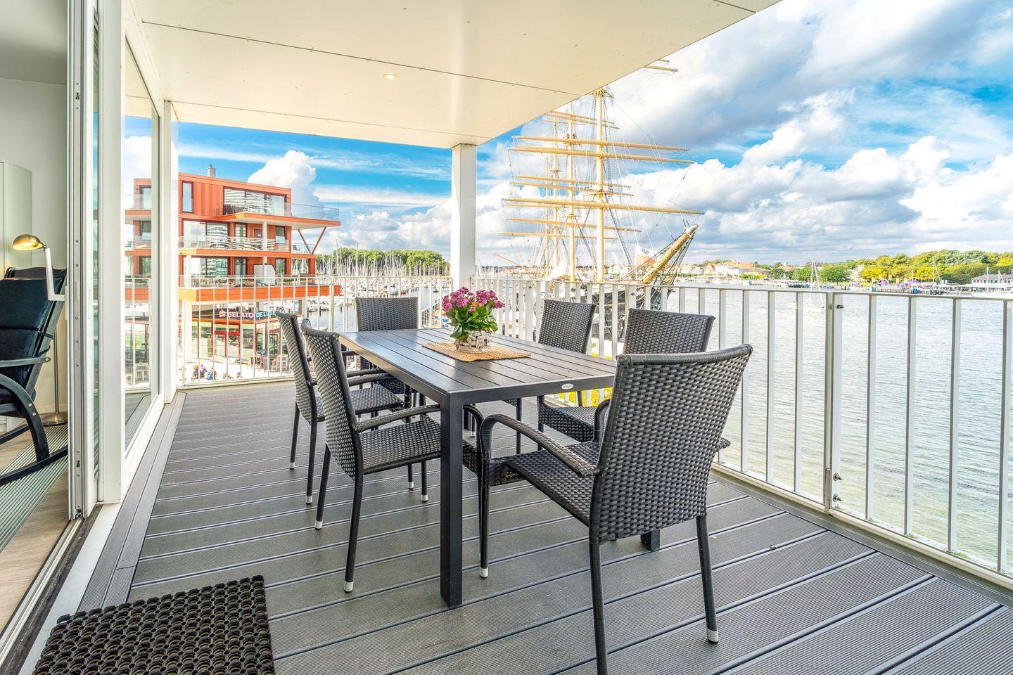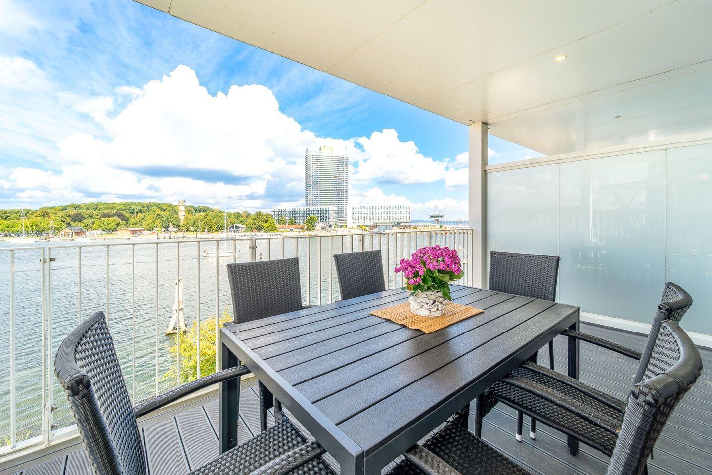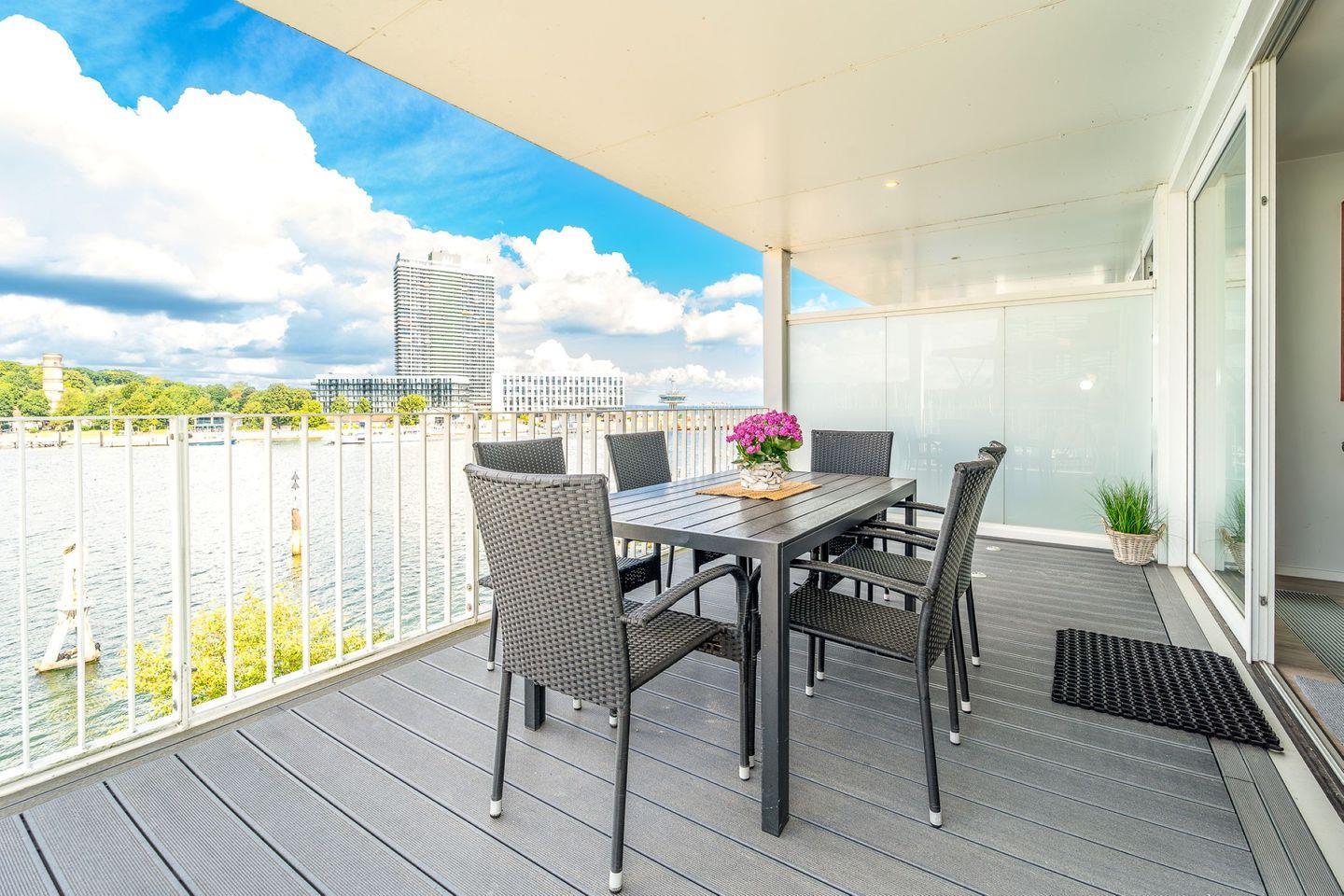 Auf dem großzügigen, überdachten Balkon mit Gartenmöbeln kannst Du die frische Meeresluft genießen. Durch die erhöhte Lage im 3. Stock erlebst Du einen besonders freien und weiten Blick über die Ostsee.