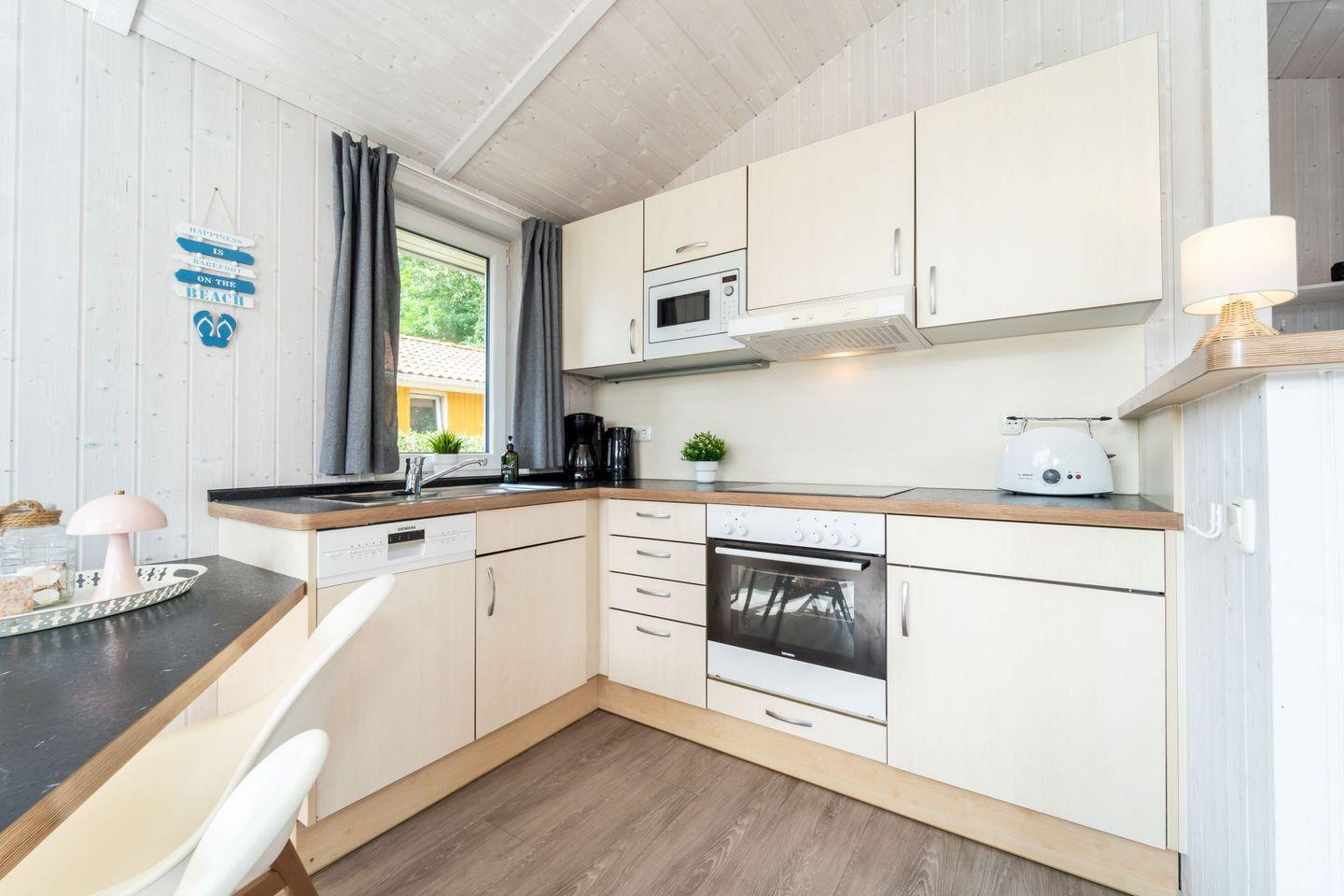 Das Haus verfügt über zwei Schlafzimmer, die jeweils mit einem Doppelbett ausgestattet sind. Robuste Vinylböden sorgen für ein helles und pflegeleichtes Wohnklima.