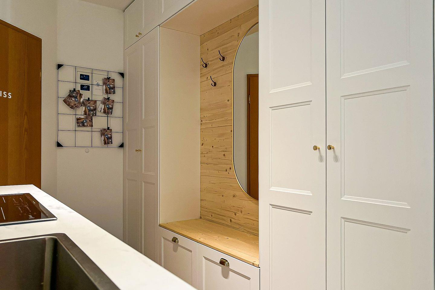 Die offene Küche ist funktional und elegant zugleich. Sie ist mit einem Induktionsherd samt Backofen, Kühlschrank mit Gefrierfach, Geschirrspülmaschine, Kaffeemaschine, Wasserkocher und Toaster vollständig ausgestattet. Ausreichend Geschirr, Besteck, Gläser und Kochutensilien sind selbstverständlich vorhanden. Der Essbereich ist harmonisch in den Wohnraum integriert und lädt zum gemeinsamen Kochen und Genießen ein.
