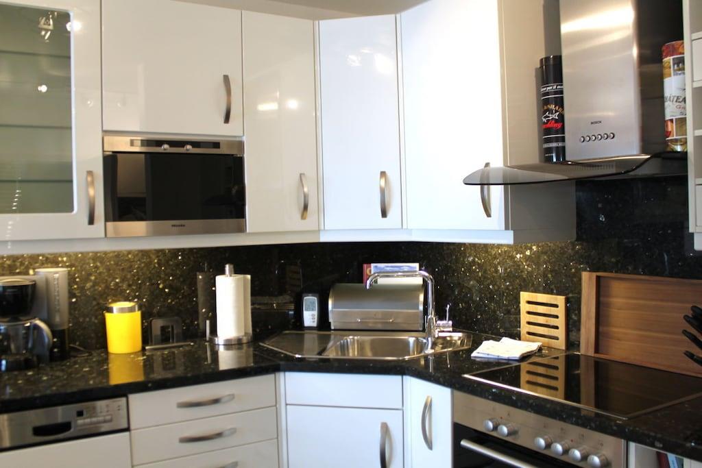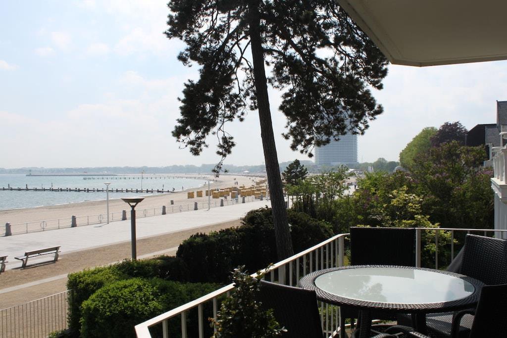 In Travemündes Prachtstraße direkt am Strand finden Sie diese spektakuläre 5 Sterne/Deluxe Wohnung im 1. OG mit 2 Zimmern in Villenlage - absolut ruhig und trotzdem zentral. Von allen Räumen und dem herrlich großen Balkon haben Sie eine 180° Blick auf den Strand, das Meer und die Promenade. Einen besseren Blick finden Sie in Travemünde nicht! Den Strand erreichen Sie über einen privaten Zugang in 10 Schritten! Die wunderschöne lichtdurchflutete Ferienwohnung ist vollständig renoviert und liebevoll eingerichtet: teils mit Birnbaum Parkett, teils mit Granit das Badezimmer ist in Naturstein und Granit luxuriös gestaltet. Die Einrichtung ist exklusiv: 46"LCD 100 Hertz, SZ 32" LCD-TV als Zweitfernseher, Designermöbel. Die offene Küche ist mit neuster Technik namhafter Hersteller ausgestattet. Sie können auf dem mit Bankiray Holzplanken ausgelegten Balkon grillen (Elektrogrill).