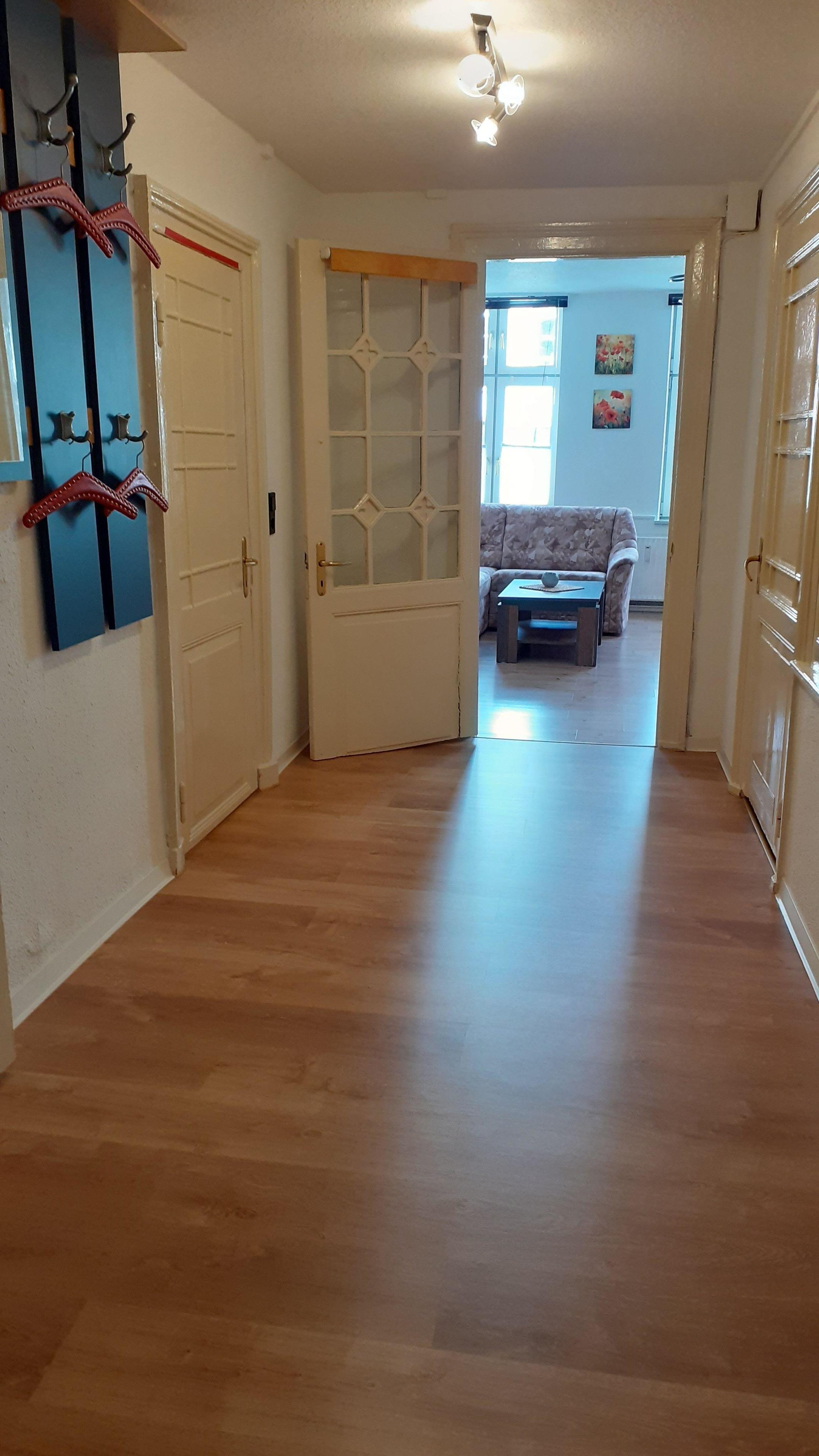 Die 2-Zimmer-Ferienwohnung (Wohnzimmer, Schlafzimmer, Küche, Duschbad/WC, Flur) liegt im 1. OG in der Fischergrube und hat eine Größe von ca. 60 qm.