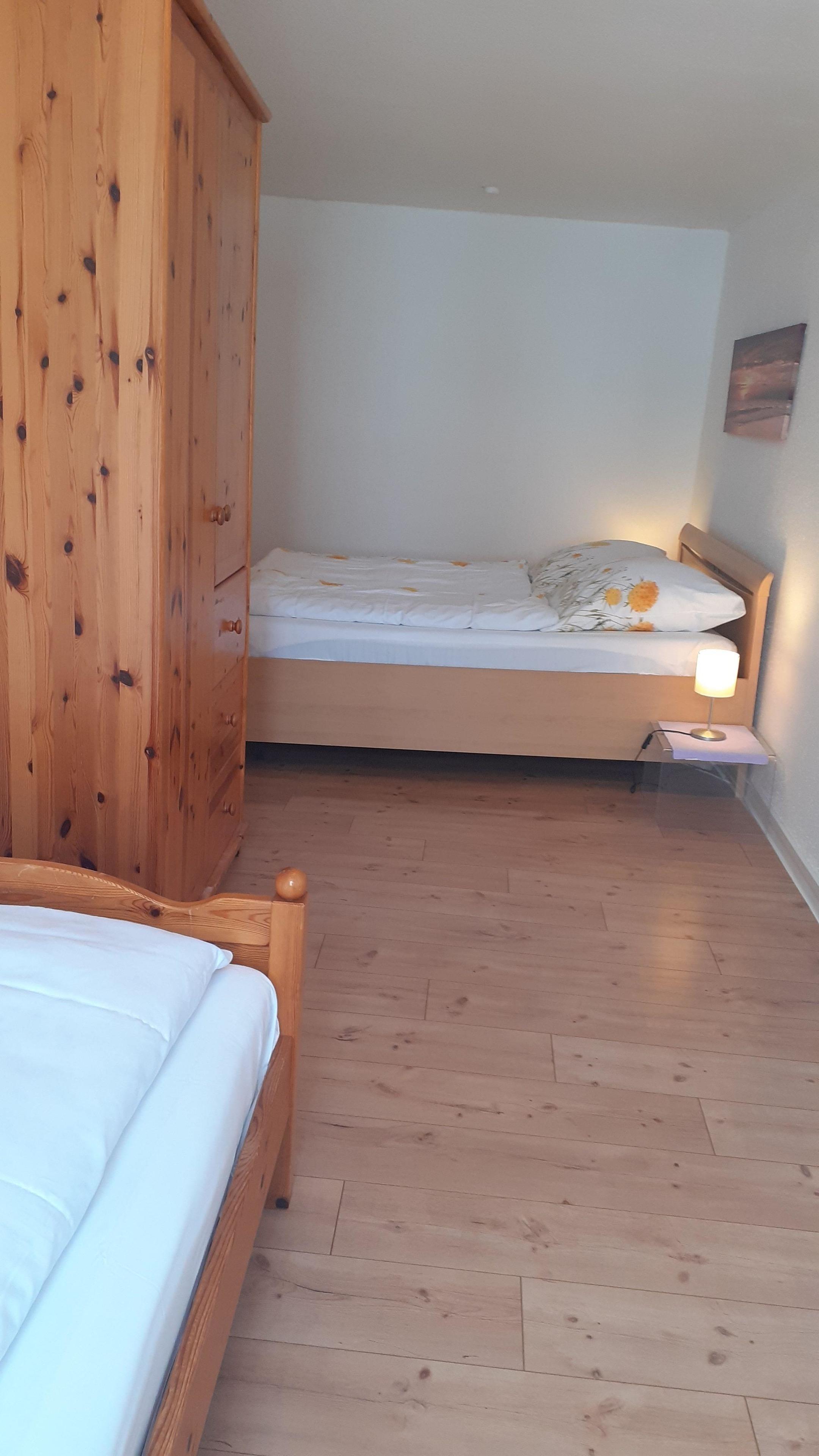 Als Schlafgelegenheiten dienen ein Doppel- und ein Einzelbett im Schlafzimmer und eine ausziehbare Doppel-Schlafcouch (Federkern) im Wohnzimmer.