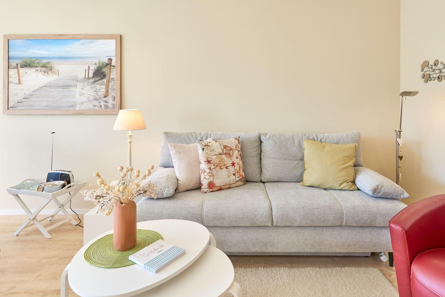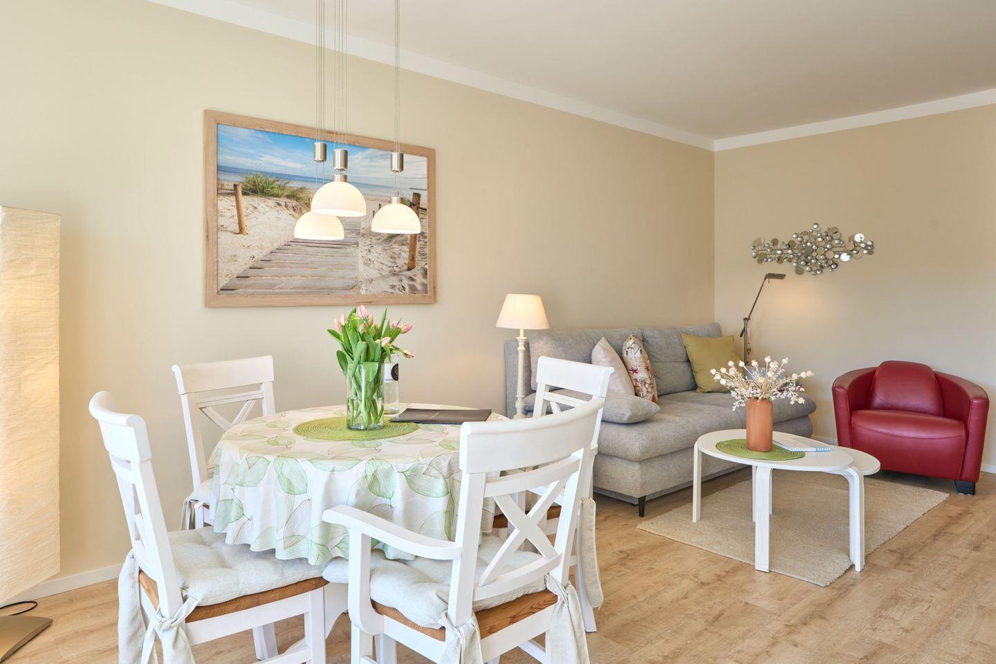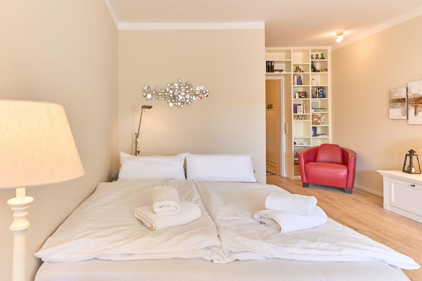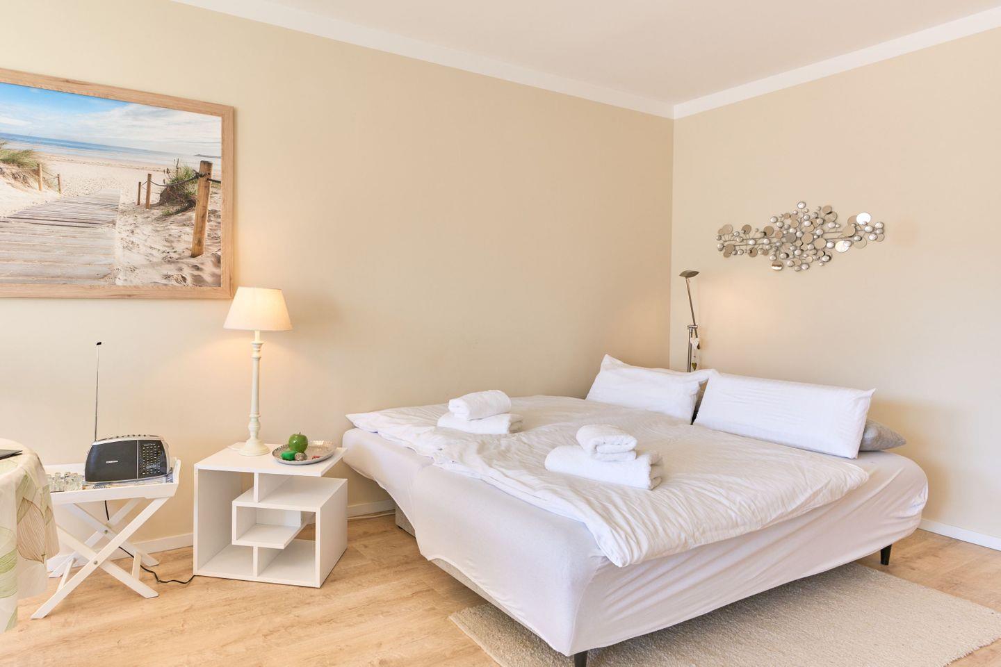 Das 46 qm große 1-Zimmer-Apartment „Sanibel“ liegt im 2.OG in einer gepflegten Wohnanlage und hat einen großen Wohn- und Schlafbereich eine vollständig eingerichtete Küche sowie ein großzügiges Wellness-Bad.
