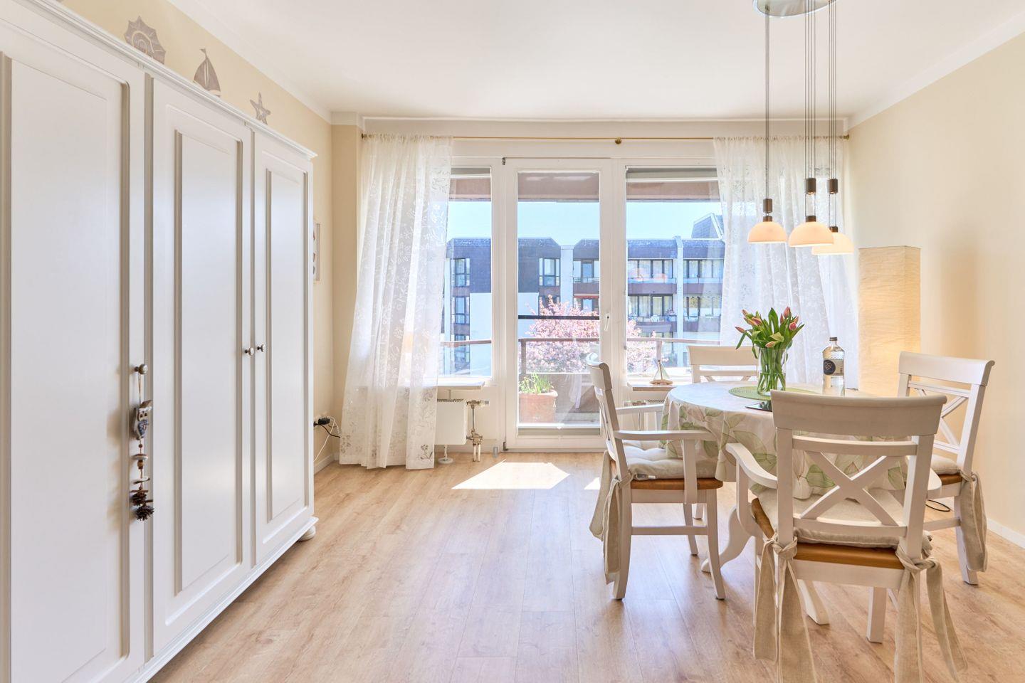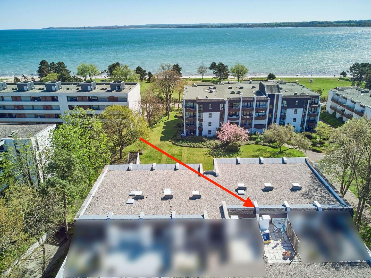 Charmantes 1-Zimmer-Apartment in Travemünde, nur 200 m vom Ostseestrand mit Balkon und großer Dachterrasse.