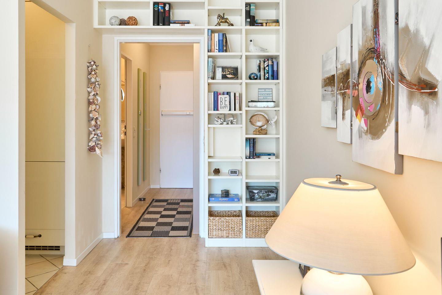 Im Wohnungs-Flur haben Sie noch die Möglichkeit ein Schrankbett mit den Maßen 120x200cm zu nutzen und den Flur mit einer Glas-Schiebetür zu verschließen.