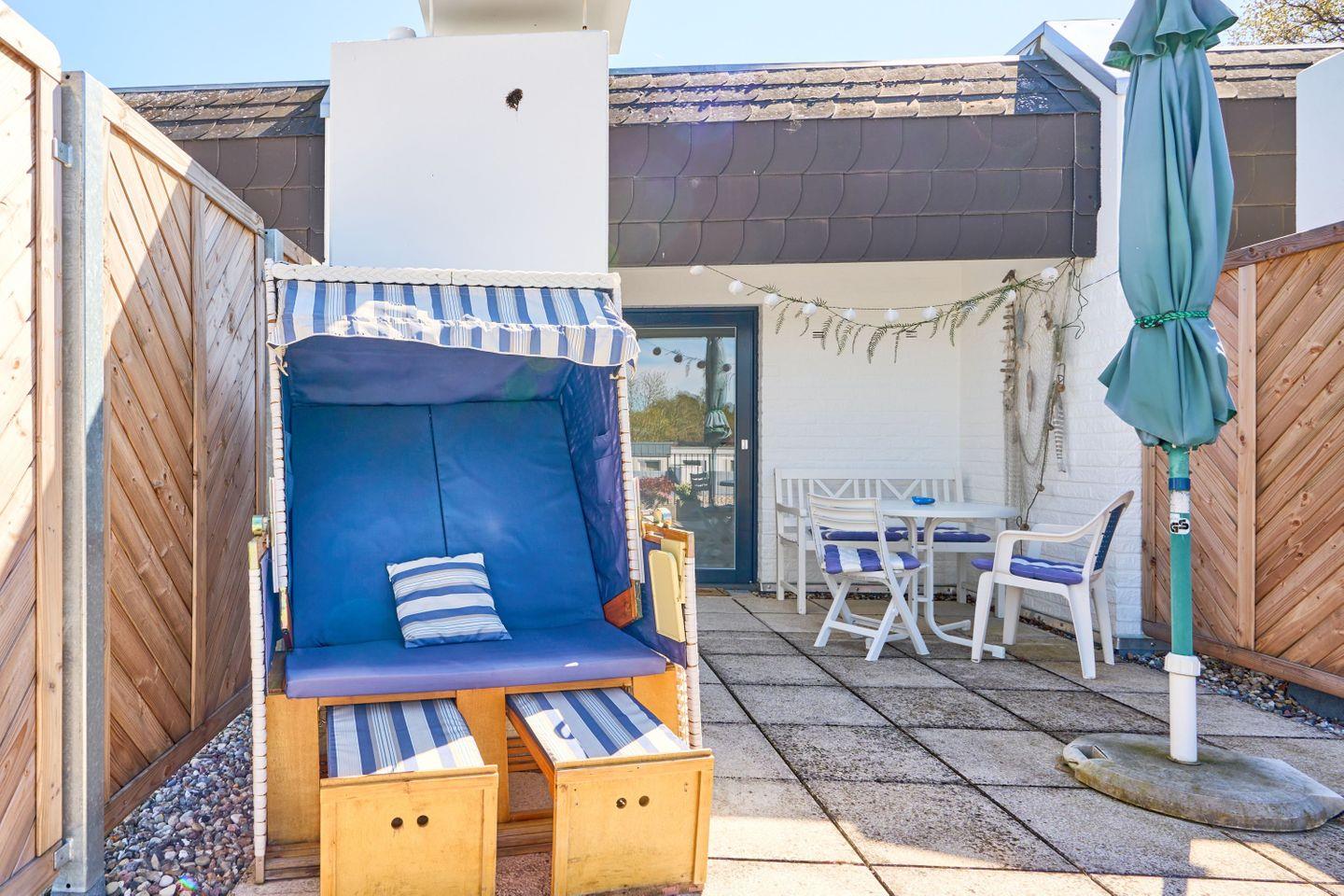 Und nach einem schönen Tag am Strand oder nach einem Ausflug in die reizvolle Umgebung kann man abends auf der 25 qm großen, zur Wohnung gehörenden Dachterrasse im eigenen Strandkorb den roten Sonnenuntergang genießen.