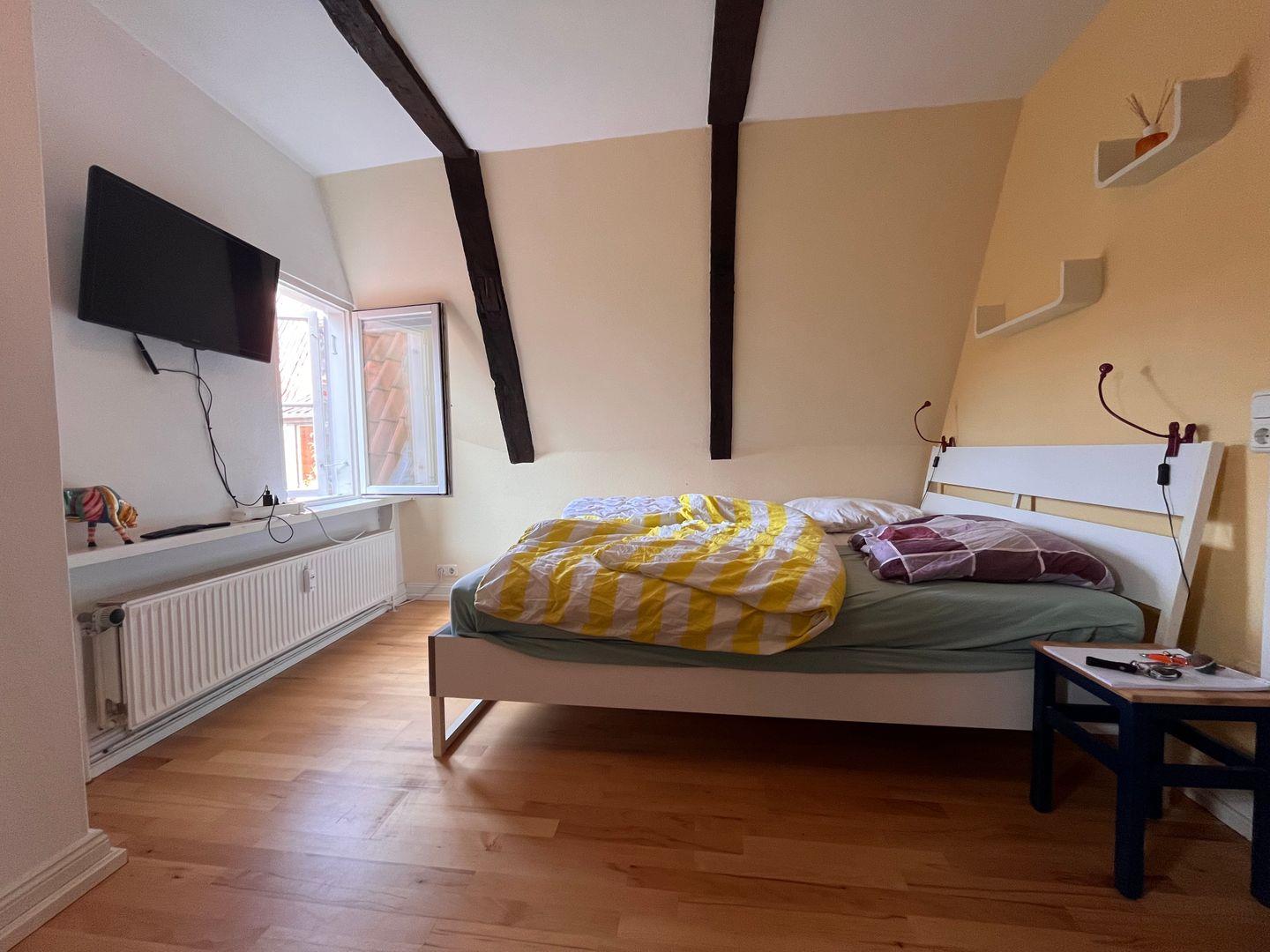 Die beiden separaten Schlafzimmer sind ruhig gelegen. Das Schlafzimmer im Spitzboden ist über eine steile Treppe erreichbar und hat zwei Einzelbetten. Das andere Schlafzimmer hat eine Doppelbett. Für Kleinkinder und Babys ist dies nicht geeignet! Auch für Menschen mit einer Gehbehinderung ist die Wohnung nicht gut zu erreichen, da der Treppenaufgang auch sehr steil ist!