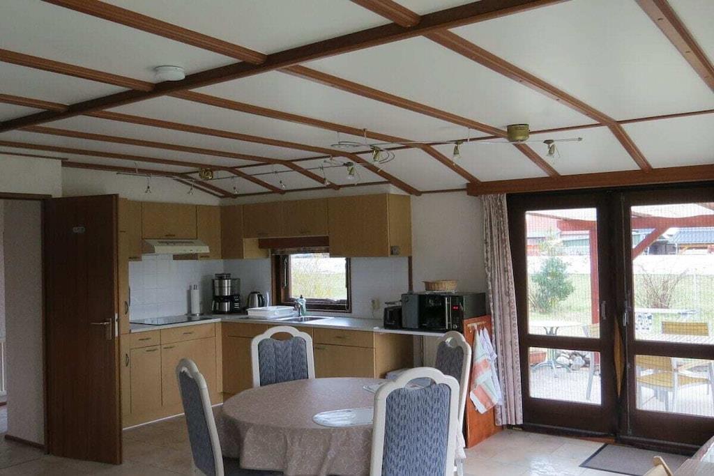Gemütlicher Bungalow "Uns lütt Hus" in Lübs mit Schwimmbecken und moderner Ausstattung für erholsame Ferien.