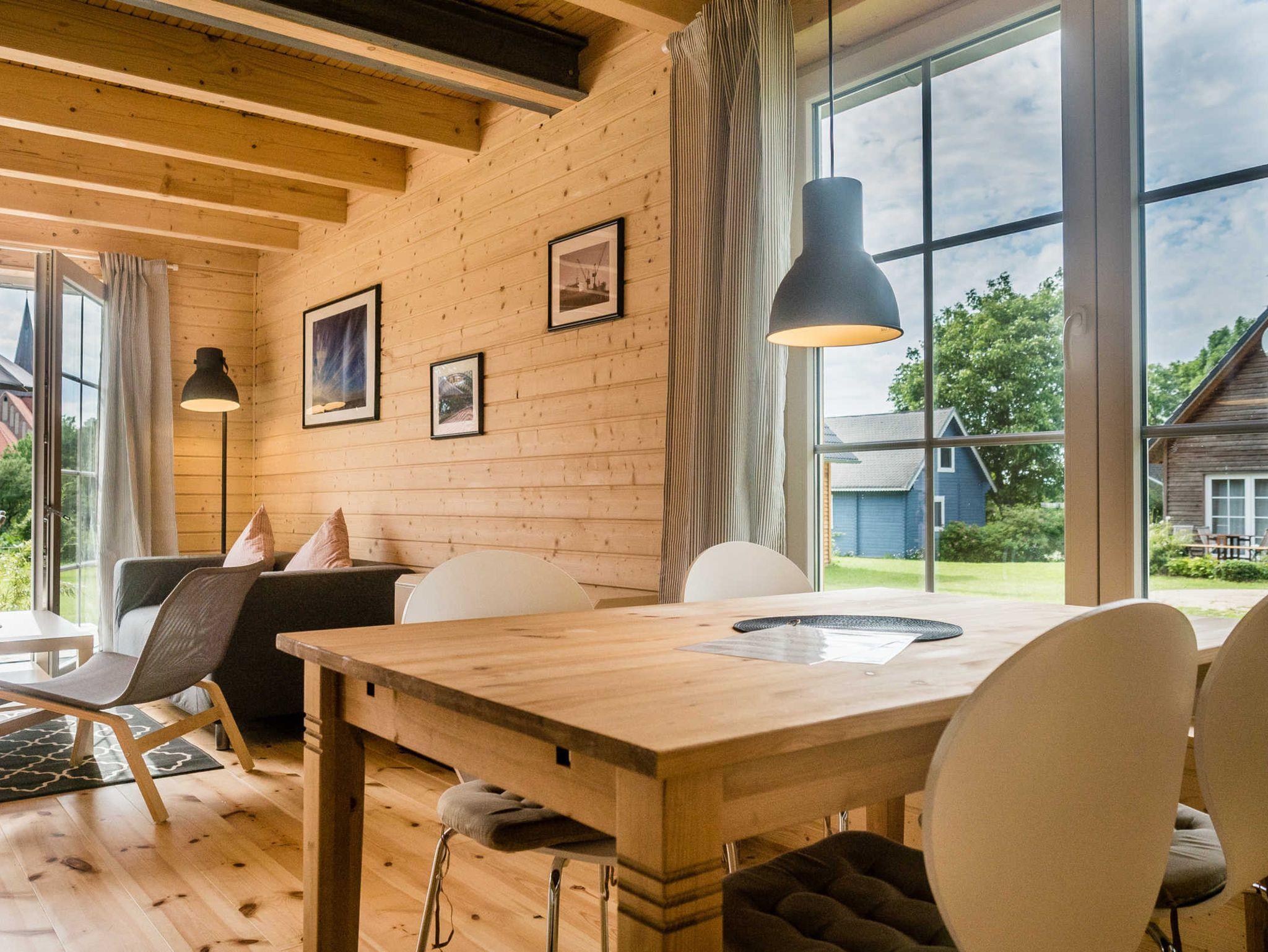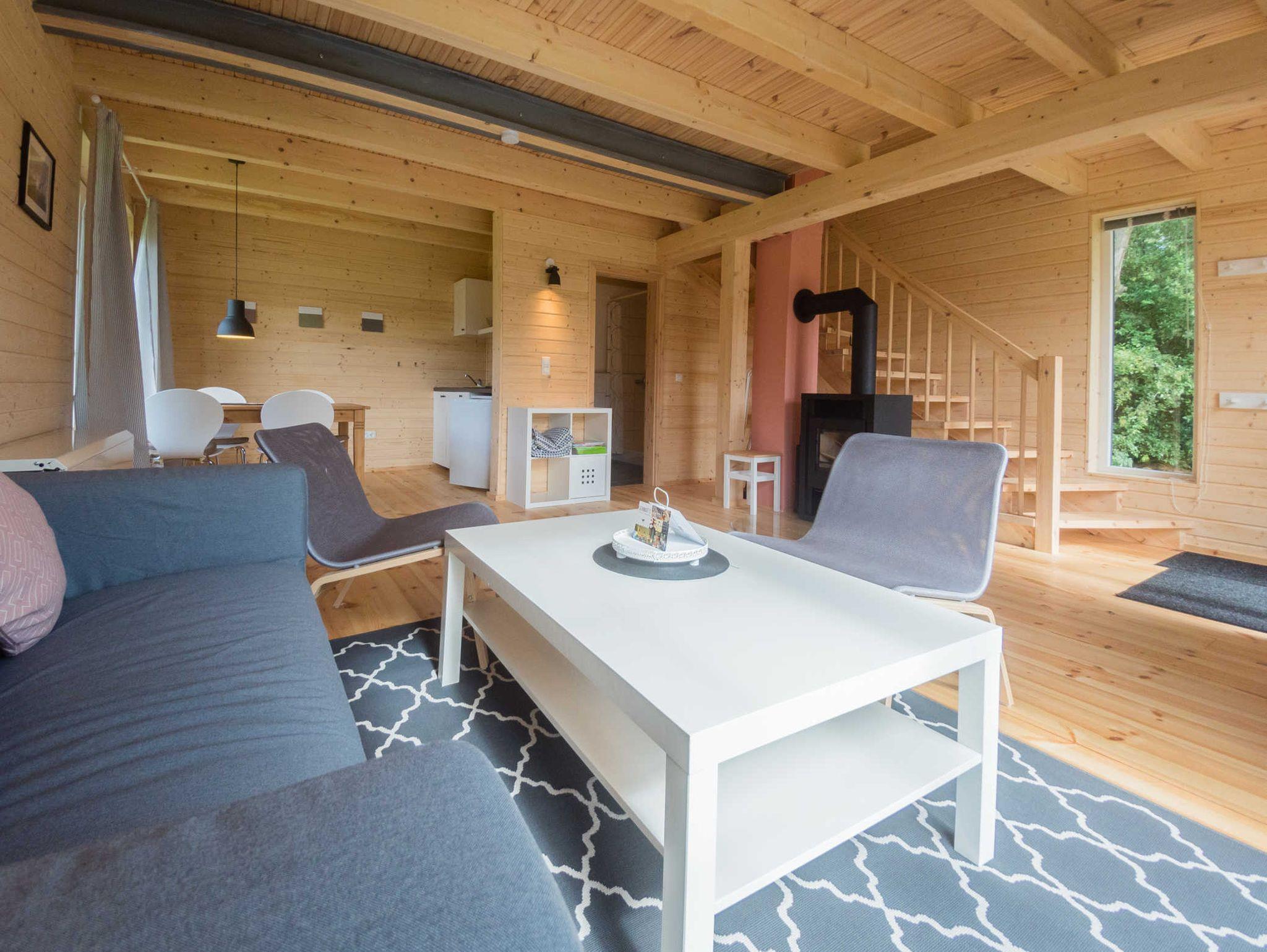 Komfortables Ferienhaus im kanadischen Stil in Lüdershagen mit Kamin und Terrasse.