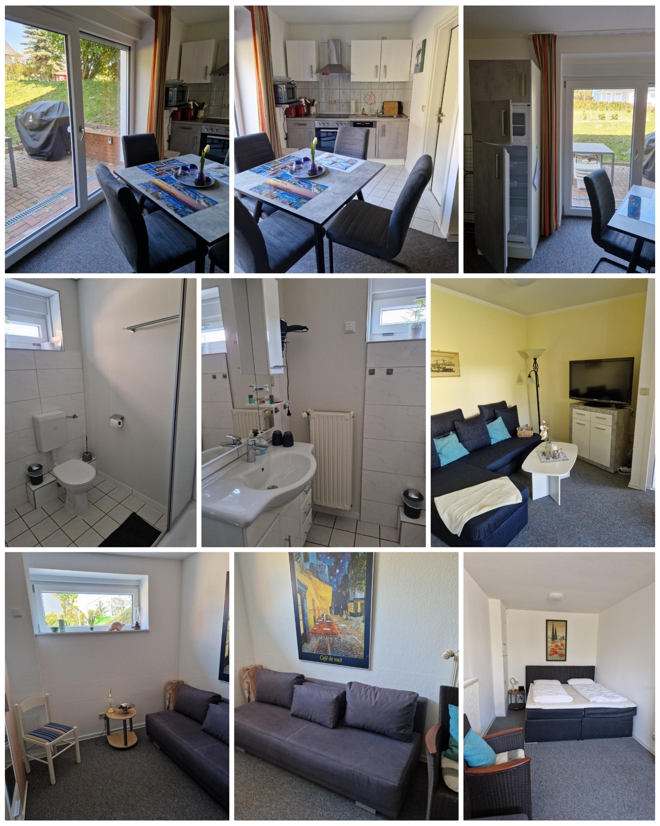 Sie möchten in einer schönen Umgebung zwischen Wald, Wiesen, Naturschutzgebiet Gnitz mit dem weißen Berg und dem Achterwasser Ihren Urlaub genießen, dann sind Sie hier genau richtig.Sie machen Urlaub in einem modern hergerichteten Ferienhaus in Alleinlage, mit uneinsehbarer Terrasse,Grill, Terrassenmöbeln und Strandkorb zum relaxen, Gartenhäuschen für Fahrräder, einem Pkw Stellplatz und viel, viel Grün. Das Appartement hat einen separaten Eingang, von diesem gelangt man in ein großes, geräumiger Wohnzimmer mit integrierter Küchenzeile und Essbereich, mit Kuschelsofa ( Schlafdoppelliege), Falch-TV. Die Küche ist modern ausgestattet, neben der Küche befindet sich das Bad mit WC und Dusche. Im Schlafzimmer befindet sich ein Boxspringbett und eine Schlafdoppelliege, ein Kleiderschrank, Bababett und Kinderhochstuhl. Alles incl. Reinigung und 1 Pkw Stellplatz. Ihren Hund können Sie auch gerne mitbringen. Handtücher und Bettwäsche sind nicht im Preis inkludiert, können aber nach verheriger Bestellung gestellt werden. Der Hund ist auch nicht im Preis inkludiert und wird extra berechnet.
