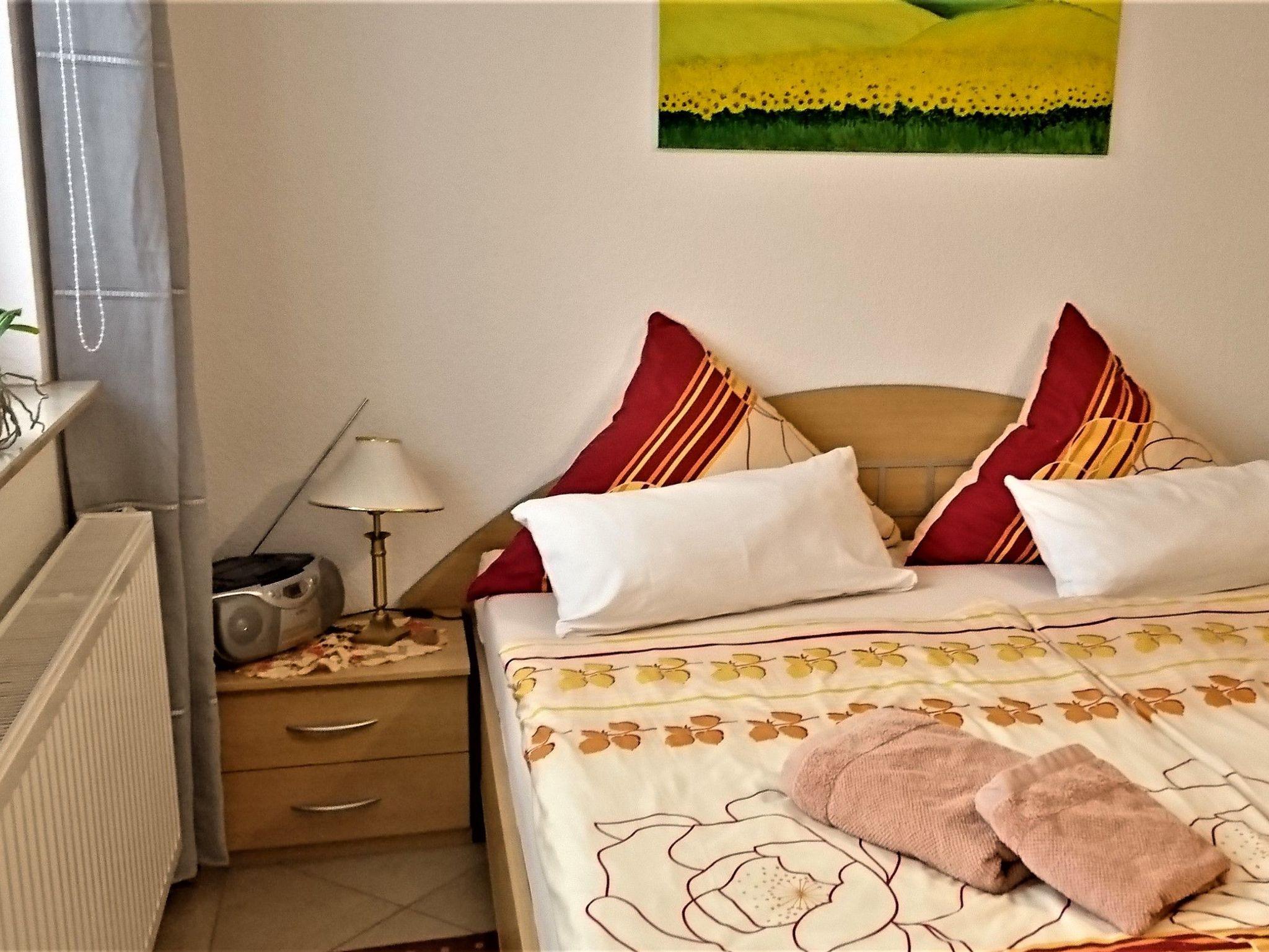 Kombinierter Wohn-Schlafraum (1 Aufbettung durch Schlafcouch möglich), Pantryküche (2-Plattenherd), Kühlschrank mit Gefrierfach, Mikrowelle, Kaffeemaschine, Eier- u. Wasserkocher, Sat-TV, Radio mit CD-Player, Wecker, Du/WC, Fön,