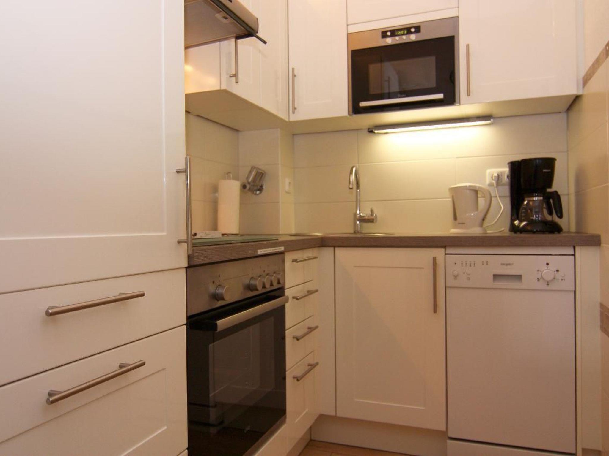 Die Ferienwohnung ist 42 qm groß - für bis zu 4 Personen + Kleinkind ( 2 Betten, Schrankdoppelbett und Kinderreisebett ), verfügt über einen Wohn-/Schlafraum mit gemütlicher Sitzecke (Sofa), einem Doppelbett (Schrankbett), Radio mit CD/MC und TV und einem separatem Schlafraum mit 2 Betten. Die voll ausgestattete Küche, mit Herd, Backofen, Geschirrspüler, Mikrowelle, Toaster, Kaffeemaschine etc. ist zum Wohnraum offen. Daran schließt sich eine Essecke mit 4 Stühlen an (bei Bedarf 6 Stühle). Die Ferienwohnung verfügt über einen offenen Balkon in Südausrichtung, Tisch, 4 Stühlen und Sonnenschirm. Reisekinderbett und Hochstuhl stehen bei Bedarf selbstverständlich kostenlos zur Verfügung. Das Mitbringen von Tieren ist nur nach vorheriger Genehmigung möglich und dann gegen Gebühr.Bettwäsche, Handtücher und Endreinigung sind im Preis enthalten. Strandhandtücher sind mitzubringen.