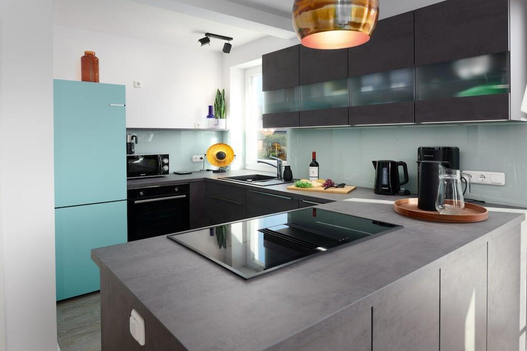 Herzlich willkommen im „Blue Ocean“, einer von unseren vier stilistisch unterschiedlichen Art-Partment Ferienwohnungen. Peppig eingerichtetes Maisonette Art-Partment, aufgeteilt in einen unteren Wohnbereich und einen oberen Relaxbereich mit eigenem Home-Office Platz, zwei Schlafzimmer mit Doppelbetten 180x200, zwei Smart-TV, Duschbad mit Waschtrockner, zentraler Wohn-Essbereich mit hochwertiger, komplett eingerichteter Einbauküche, Esstisch, gemütliche Sofalandschaft, direkter Zugang zum möblierten Balkon, Privatparkplatz direkt am Haus, im Flur separater Hauswirtschaftsschrank mit Staubsauger, Bügeleisen, Wäscheständer, Feuerlöscher, Putzutensilien.