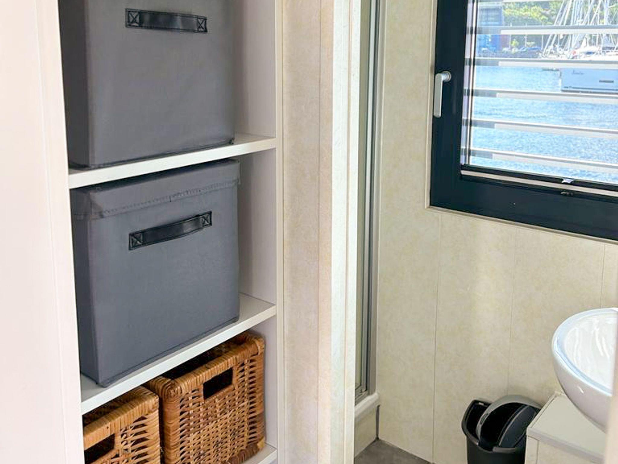 Das Floating House 2 ist dein maritimes Zuhause auf Zeit mitten in der modernen Baltic-Bay-Marina im Ostseebad Laboe und mit herrlichem Blick über die Kieler Förde. Mit 44m² Wohnfläche, zwei Schlafzimmern mit Doppelbetten (160x200) und Platz für bis zu 4 Personen ist dieses hundefreie Hausboot ideal für Paare oder Familien, die Ruhe, Komfort und das Flair des Hafens miteinander verbinden möchten. Im lichtdurchfluteten Wohnbereich erwartet dich eine bequeme Eck-Couch, ein Essplatz und eine integrierte Küche, die alles bietet, was du für entspannte Urlaubstage brauchst: Mikrowelle, Spülmaschine, Ceranfeld (2-flammig), Kühlschrank mit Gefrierfach, Kaffeemaschine, Toaster, Wasserkocher und natürlich ausreichend Geschirr. Das Badezimmer ist funktional und praktisch aufgeteilt mit separatem Duschbad und WC mit Waschtisch. Am Bug des Hausbootes wartet eine 15m² große Terrasse, möbliert und ideal für dein Frühstück im Freien oder entspannte Hafenblicke. Das wahre Highlight aber ist das Sonnendeck auf dem Dach mit 25m² zusätzlicher Fläche, um die Weite der Förde, das maritime Treiben und die klare Ostseeluft ganz in Ruhe zu genießen. Zur Ausstattung gehören ein TV, DVD-Player, Radio und CD-Player, sowie eine Klimaanlage für angenehme Temperaturen auch an heißen Tagen. Ein kostenfreier Parkplatz befindet sich direkt am Hafen. Für längere Aufenthalte oder frische Urlaubswäsche zwischendurch kannst du außerdem Waschmaschine und Trockner direkt in der Marina gegen eine kleine Gebühr nutzen. Die Vermietung erfolgt saisonal von Frühjahr bis Herbst, in der frostfreien Zeit.