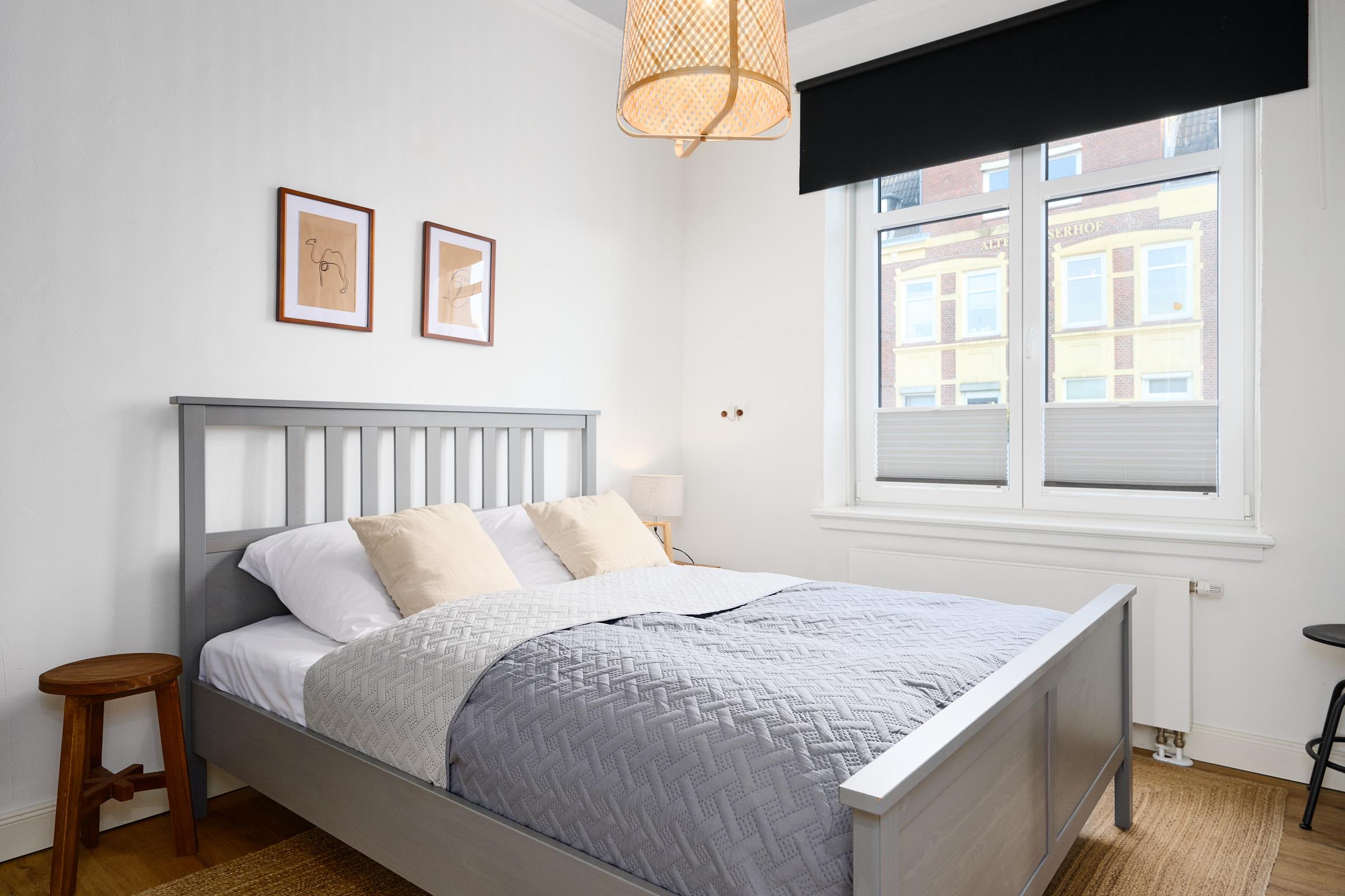 Schlafzimmer 1: Doppelbett, Kleiderschrank, Verdunkelung: Rollo