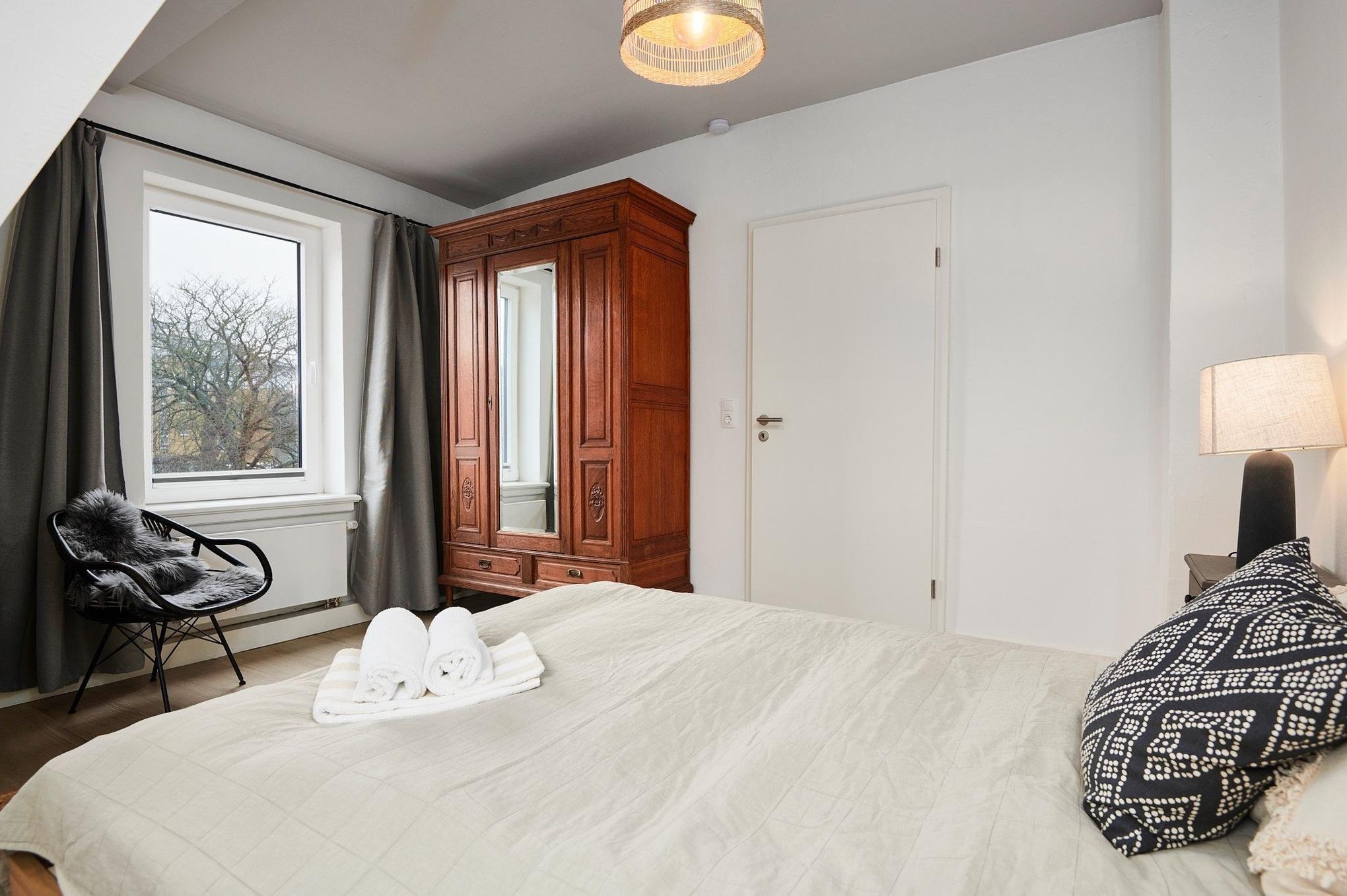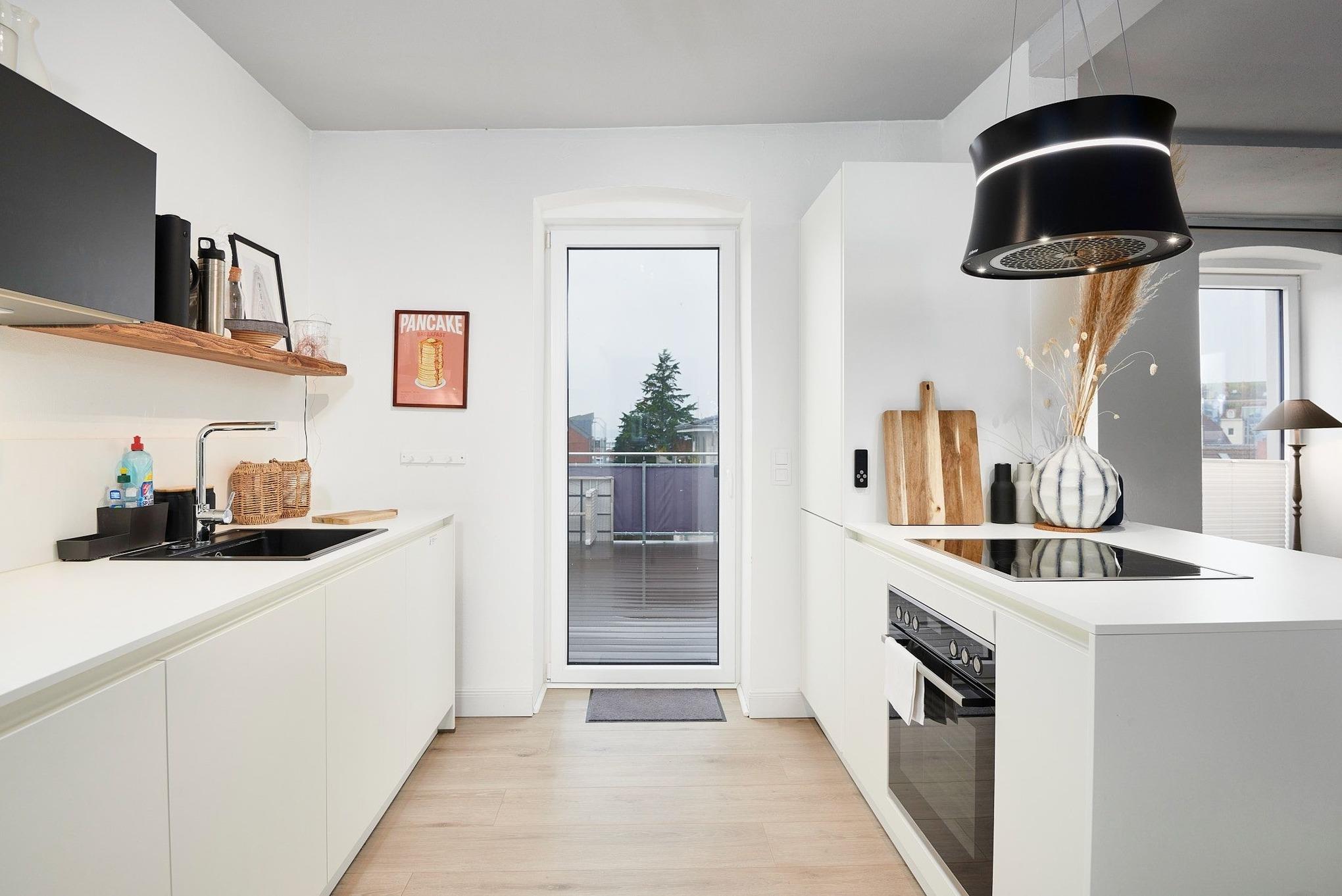 Herzlich willkommen im Urlaub! Freuen Sie sich auf den Charme eines Altbaus mit hohen Decken und Dielen sowie lichtdurchfluteten Zimmern. Die Wohnung verfügt über eine geschmackvoll eingerichtete Wohn-/Esszimmer-Kombination mit moderner Küche, die Lounge-Charakter aufweist und zum Verweilen einlädt. Ob zum Gespräch, zum Essen, zum Fernsehen, zum Kochen oder einfach zum Chillen - alles ist hier möglich. Und wer seine Ruhe möchte, zieht sich zurück auf den mit fast 20 m² riesigen Balkon, der eher einer Dachterrasse gleicht und zwischen den Häusern hindurch sogar einen Blick bis zum Hafen bietet. Neben den komfortablen Möbeln, die den Charme des Altbaus bekräftigen, glänzt die Wohnung durch die technische Ausstattung: Zwei große Smart-TV Geräte sind mit Netflix, Amazon Prime etc. ausgestattet und über Google Home (dem Gegenstück zu Alexa) können Sie per Stimme jederzeit Radio und Musik abspielen lassen. Die drei Schlafzimmer, in denen jeweils ein Doppelbett steht, versprechen erholsame Nächte mit bunten Träumen. Das tageslichthelle Badezimmer ist modern eingerichtet und punktet mit der ebenerdigen Dusche, von der Sie aus nach draußen auf den Balkon blicken können. Diesen können Sie sowohl vom Bad als auch von der Küche aus betreten.